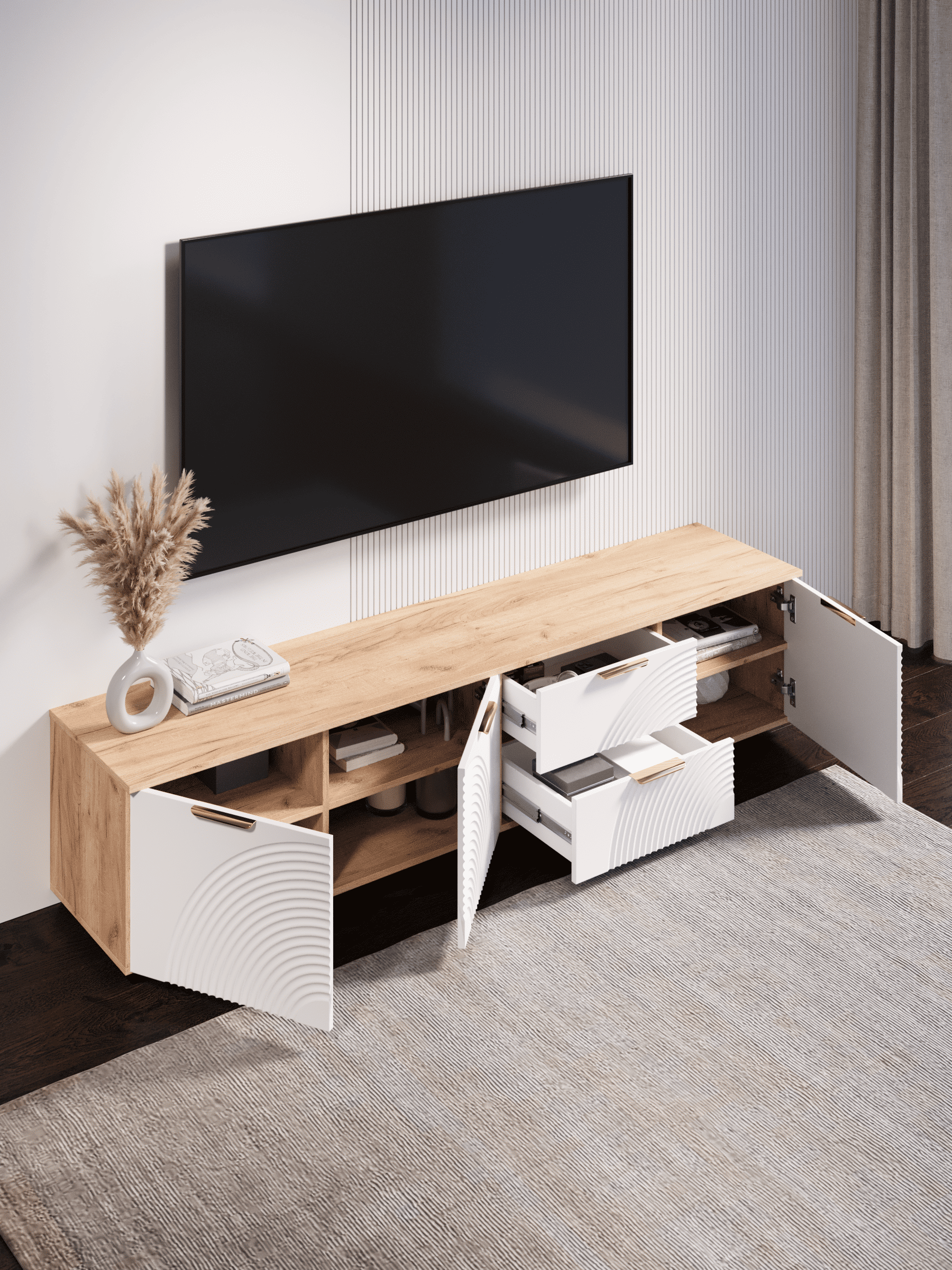 Ищете стильное и функциональное решение для вашего интерьера? Тумба под ТВ Ингрия Luxe 5 — это именно то, что вам нужно! Преимущества тумбы Ингрия Luxe 5 многофункциональность. Тумба может использоваться как туалетный столик, тумба для прихожей или тумба для белья. Это идеальное решение для тех, кто хочет сэкономить пространство и получить максимум пользы от мебели. Большая вместительность. Благодаря наличию ящиков, вы сможете удобно хранить все необходимые вещи: одежду, аксессуары, косметику и т.д. Стильный дизайн. Современный дизайн тумбы прекрасно и легко впишется в любой интерьер и станет его украшением. Не упустите возможность приобрести стильную и функциональную подвесную тумбу Ингрия 5! Сделайте свой дом ещё более уютным и комфортным!Современная мебель для дома должна не только брать на себя пару задач по организации пространства, но и гармонично смотреться, выполняя нужные нам функции. Поэтому данную тв тумбу можно использовать в разных помещениях в гостиной, спальне, прихожей (коридоре), в детской, в офисе, в салоне красоты, на балконе. Он справится со всеми возложенными на него функциями. Используйте тумбочку как панель под телевизор, как модуль мебельный под одежду, нишу для детских вещей, в прихожую, в ванную, полку под аквариум, узкий комод для игрушек, как прикроватную подставку. Перед отправкой мебели, каждое изделие проходит проверку на наличие брака. Для целостности и сохранности каждого изделия мы разработали усиленную, надежную упаковку. Европейское качество от российского производителя - по доступным ценам.