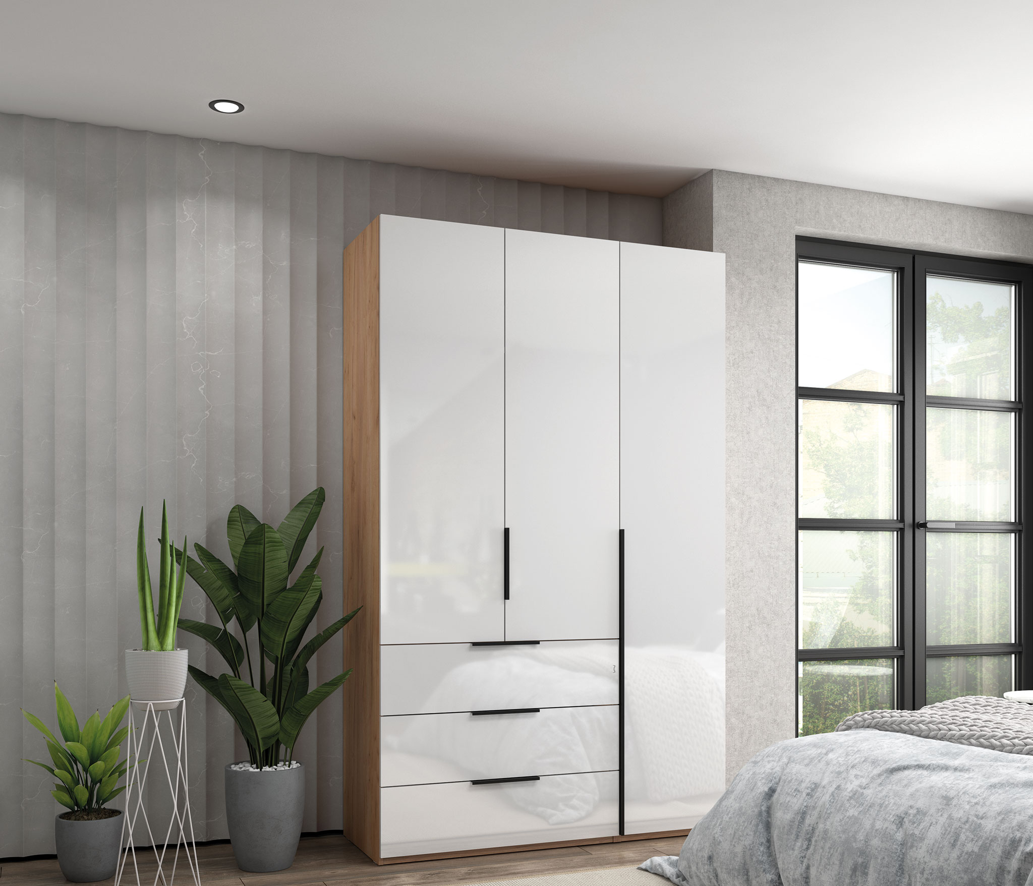 Коллекция шкафов «Люкс» - это линейка современных шкафов для тех, кто ценит эффектный внешний вид и продуманную функциональность. Мебель выполнена в актуальной комбинированной гамме: корпус в цветах Белый и Дуб крафт сочетается с фасадами Белый глянец, что позволяет легко вписать шкафы в светлый современный интерьер и визуально расширить пространство. Фасады покрыты глянцевым лаком, который обеспечивает высокий уровень блеска, создаёт эффект глубины и мягкого отражения света. Благодаря этому шкафы выглядят более объёмными и «воздушными». Фурнитура и конструктивные решения: • шариковые направляющие полного выдвижения - плавный и тихий ход выдвижных элементов и удобный доступ к содержимому; • Петли с доводчиками - мягкое и бесшумное закрывание дверей; • Скрытые регулируемые опоры (ножка 50-70 мм под цоколь с упором на боковину) для точной установки шкафа по уровню; • Пластиковые опоры чёрного цвета, обеспечивающие устойчивость и аккуратный внешний вид цокольной зоны. Дополнительные характеристики: Длина штанги для одежы- 462 мм Размер полки - 390 х 490 х 16 мм Высота фасада выдвижного ящика - 236 мм Внутренний размер ящика - 825 х 455 х 139 мм Шкафы коллекции «Люкс» позволяют подобрать решения разных размеров и конфигураций, сохраняя общий стиль - глянец, лёгкость и аккуратный современный дизайн