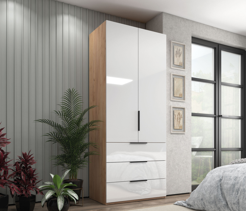 Коллекция шкафов «Люкс» - это линейка современных шкафов для тех, кто ценит эффектный внешний вид и продуманную функциональность. Мебель выполнена в актуальной комбинированной гамме: корпус в цветах Белый и Дуб крафт сочетается с фасадами Белый глянец, что позволяет легко вписать шкафы в светлый современный интерьер и визуально расширить пространство.