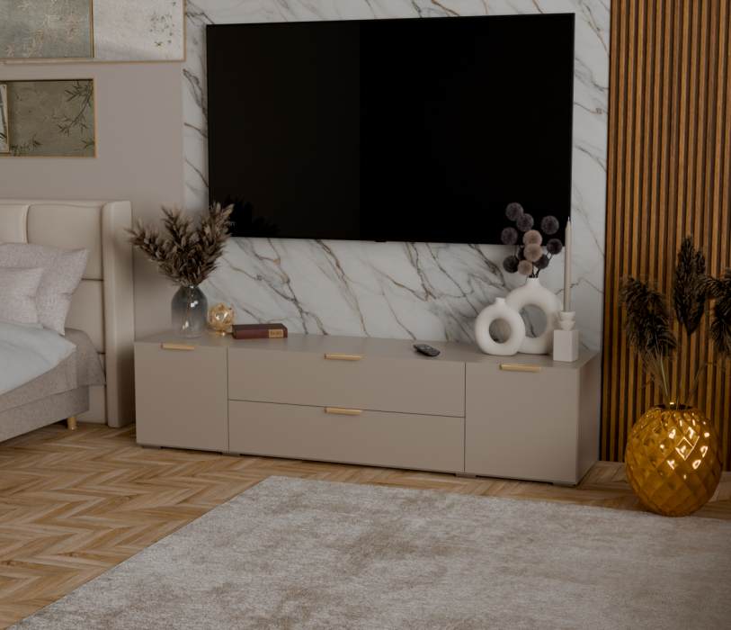 Тумба под ТВ Фиеста Лайт 190 см в цвете Кашемир – это большая и стильная ТВ-тумба, созданная для современных гостиных, где важен одновременно красивый вид и удобное хранение.