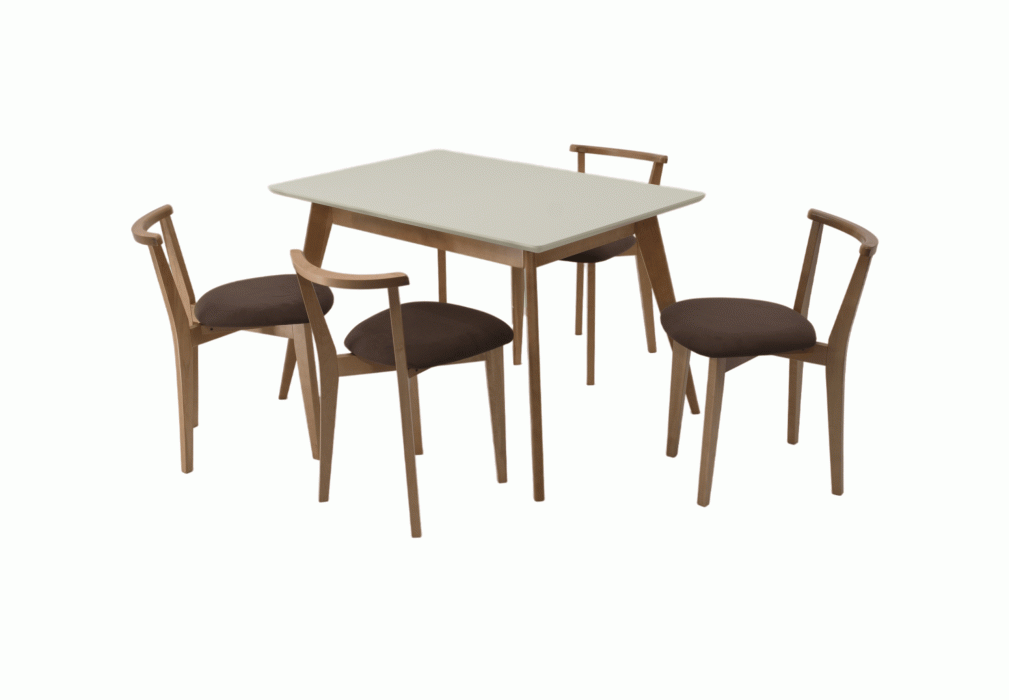 Комплект из деревянного стола Сканди на каркасе из натурального дерева и 4 стула Франк отлично подойдет к интерьеру, выдержанному в скандинавском стиле. Данный комплект станет центральным элементом в гостиной, столовой зоне, на кухне, позволив создать уютное обеденное место, где смогут собираться члены дружной семьи и их гости.У модели прямоугольная форма столешницы, со скруглением углов. Такое решение исключит риск сколов и обеспечит безопасность, в том числе, детям.Комплект выполнен в красивй комбинации цветов - натур и слоновая кость. Сочетание изысканного дизайна и высокого качества исполнения - главная особенность комплекта.Столешница выполнена из материалов с великолепными эксплуатационными свойствами - МДФ (Материал создается на основе натуральной древесины. Практичен, надежен, имеет однородную гладкую структуру), шпон.Мебель проста в уходе - для поддержания первозданного вида достаточно использовать простую чуть влажную салфетку по мере необходимости.Состав комплекта: Стол F514102NUS 120x80x75 и 4 стула R101707N04 44x53x73