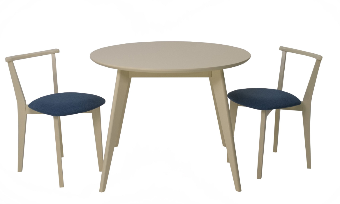 Комплект из деревянного стола Сканди на каркасе из натурального дерева и 2 стула Франк отлично подойдет к интерьеру, выдержанному в скандинавском стиле. Данный комплект станет центральным элементом в гостиной, столовой зоне, на кухне, позволив создать уютное обеденное место, где смогут собираться члены дружной семьи и их гости.У модели круглая форма столешницы. Такое решение исключит риск сколов и обеспечит безопасность, в том числе, детям.Комплект выполнен в красивом цвете - слоновая кость. Сочетание изысканного дизайна и высокого качества исполнения - главная особенность комплекта.Столешница выполнена из материалов с великолепными эксплуатационными свойствами - МДФ (Материал создается на основе натуральной древесины. Практичен, надежен, имеет однородную гладкую структуру), шпон.Мебель проста в уходе - для поддержания первозданного вида достаточно использовать простую чуть влажную салфетку по мере необходимости.Состав комплекта:- стол F004110S00- стулья R101709S03
