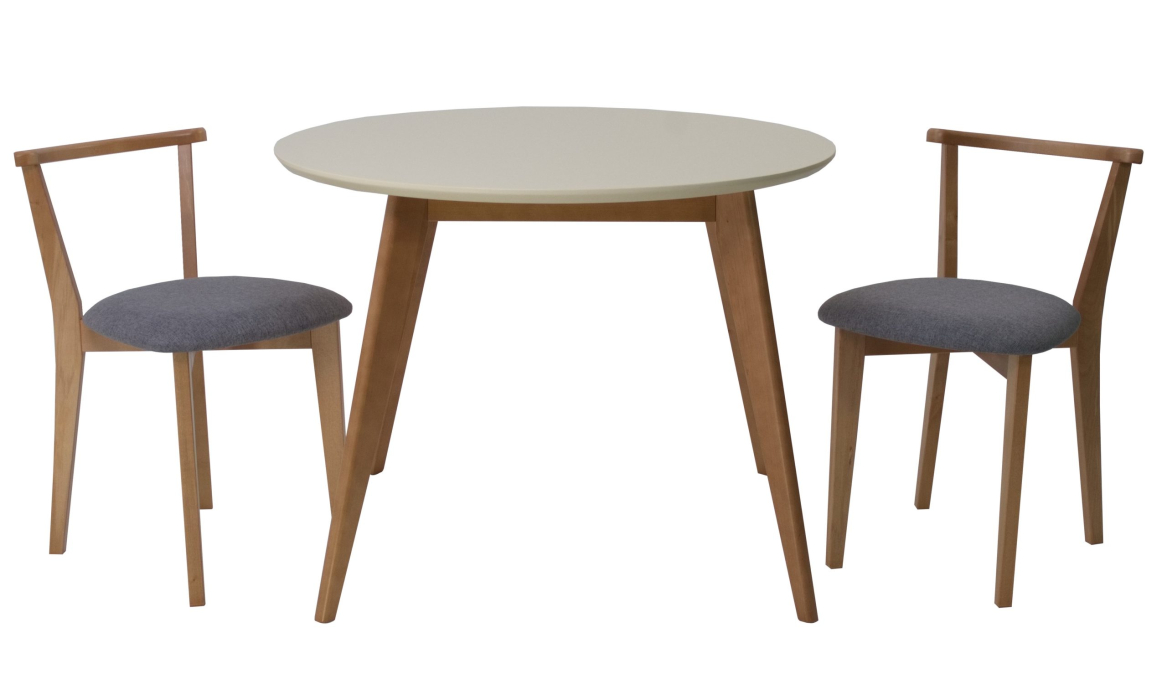 Комплект из деревянного стола Сканди на каркасе из натурального дерева и 2 стула Франк отлично подойдет к интерьеру, выдержанному в скандинавском стиле. Данный комплект станет центральным элементом в гостиной, столовой зоне, на кухне, позволив создать уютное обеденное место, где смогут собираться члены дружной семьи и их гости.У модели круглая форма столешницы. Такое решение исключит риск сколов и обеспечит безопасность, в том числе, детям.Комплект выполнен в красивой комбинации цветов - орех, слоновая кость. Сочетание изысканного дизайна и высокого качества исполнения - главная особенность комплекта.Столешница выполнена из материалов с великолепными эксплуатационными свойствами - МДФ (Материал создается на основе натуральной древесины. Практичен, надежен, имеет однородную гладкую структуру), шпон.Мебель проста в уходе - для поддержания первозданного вида достаточно использовать простую чуть влажную салфетку по мере необходимости.Состав комплекта:- стол F004112NUS- стулья R101707N01