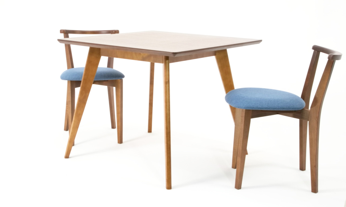 Комплект из деревянного стола Сканди на каркасе из натурального дерева и 2 стула Франк отлично подойдет к интерьеру, выдержанному в скандинавском стиле. Данный комплект станет центральным элементом в гостиной, столовой зоне, на кухне, позволив создать уютное обеденное место, где смогут собираться члены дружной семьи и их гости.У модели квадратная форма столешницы, со скруглением углов. Такое решение исключит риск сколов и обеспечит безопасность, в том числе, детям.Комплект выполнен в красивом  цвете - орех. Сочетание изысканного дизайна и высокого качества исполнения - главная особенность комплекта.Столешница выполнена из материалов с великолепными эксплуатационными свойствами - МДФ (Материал создается на основе натуральной древесины. Практичен, надежен, имеет однородную гладкую структуру), шпон.Мебель проста в уходе - для поддержания первозданного вида достаточно использовать простую чуть влажную салфетку по мере необходимости.Состав комплекта:- стол F404114W00- стулья R101709W03