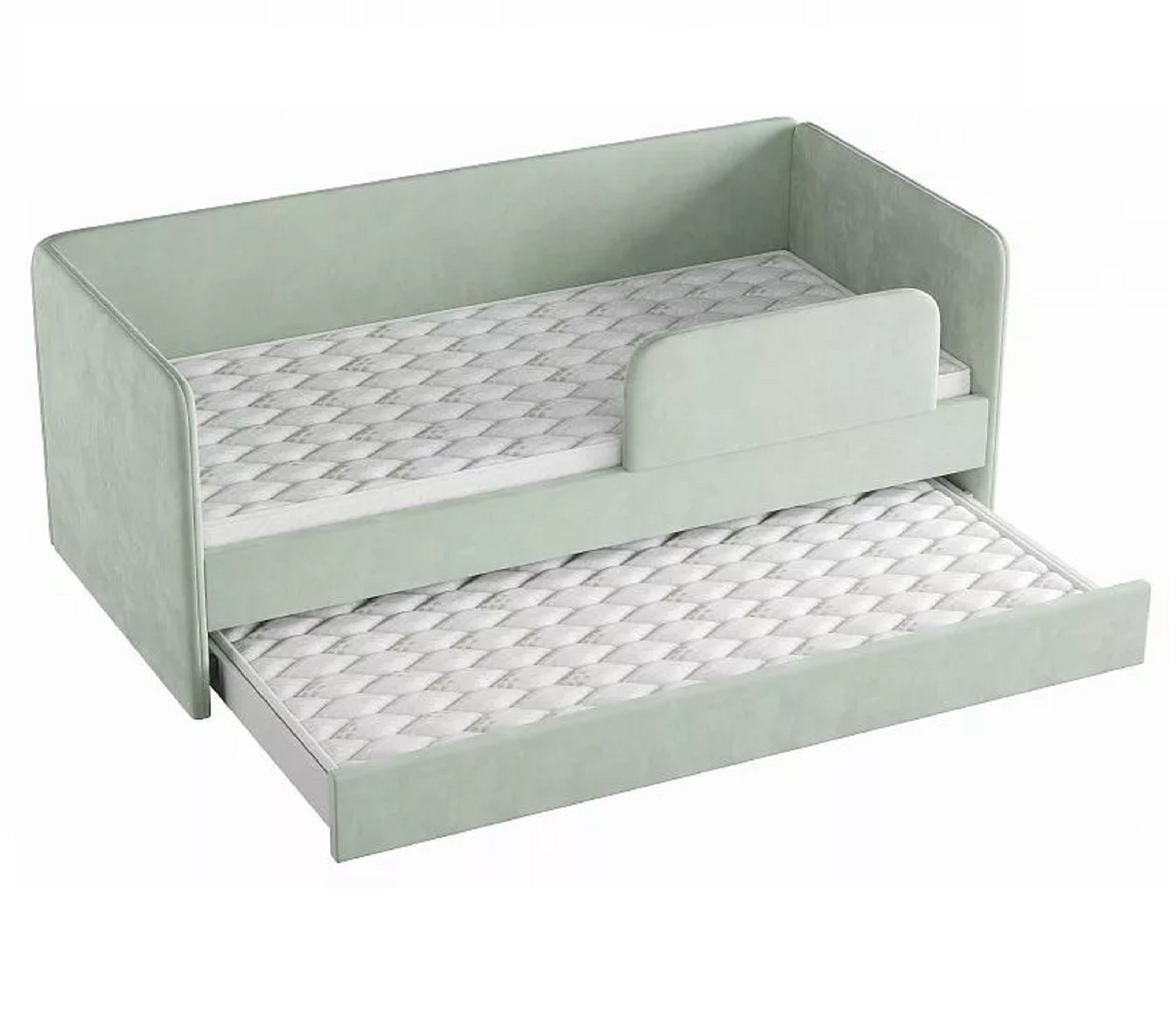 Кровать можно использовать без бортика, либо переставить его на удобную сторону.