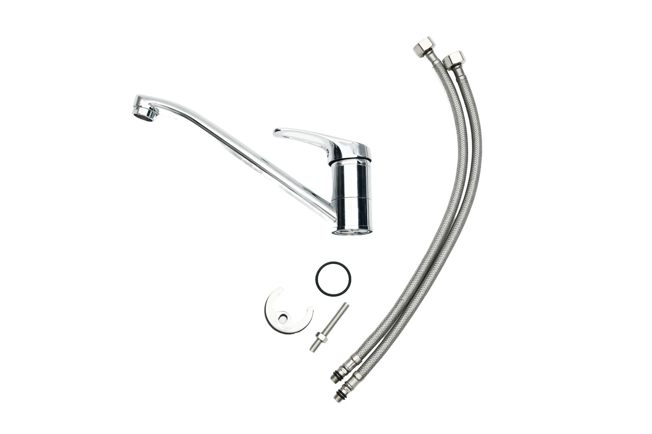 Смеситель для кухни из латуни, с поворотным изливом, однорычажный. Фирменная картонная упаковка.