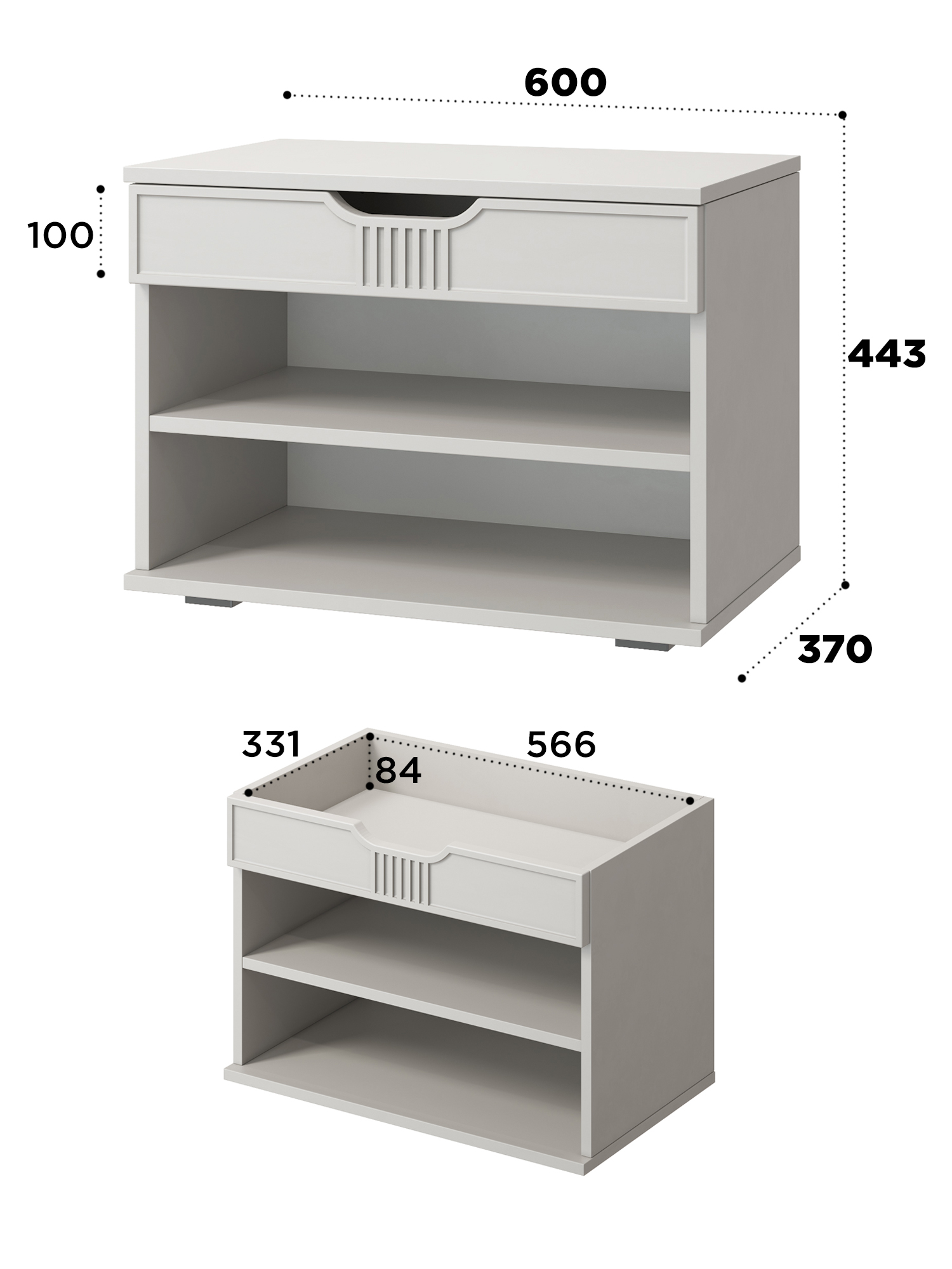 Тумба для обуви Эмилия ЭЛ-44 – компактная модель для комфортного переобувания в прихожую. Лаконичное изделие оборудовано двумя полками для обуви и сиденьем, под которым находится удобный ящик для хранения чистящих средств, щеток или зонта. Высота опоры 20 мм.