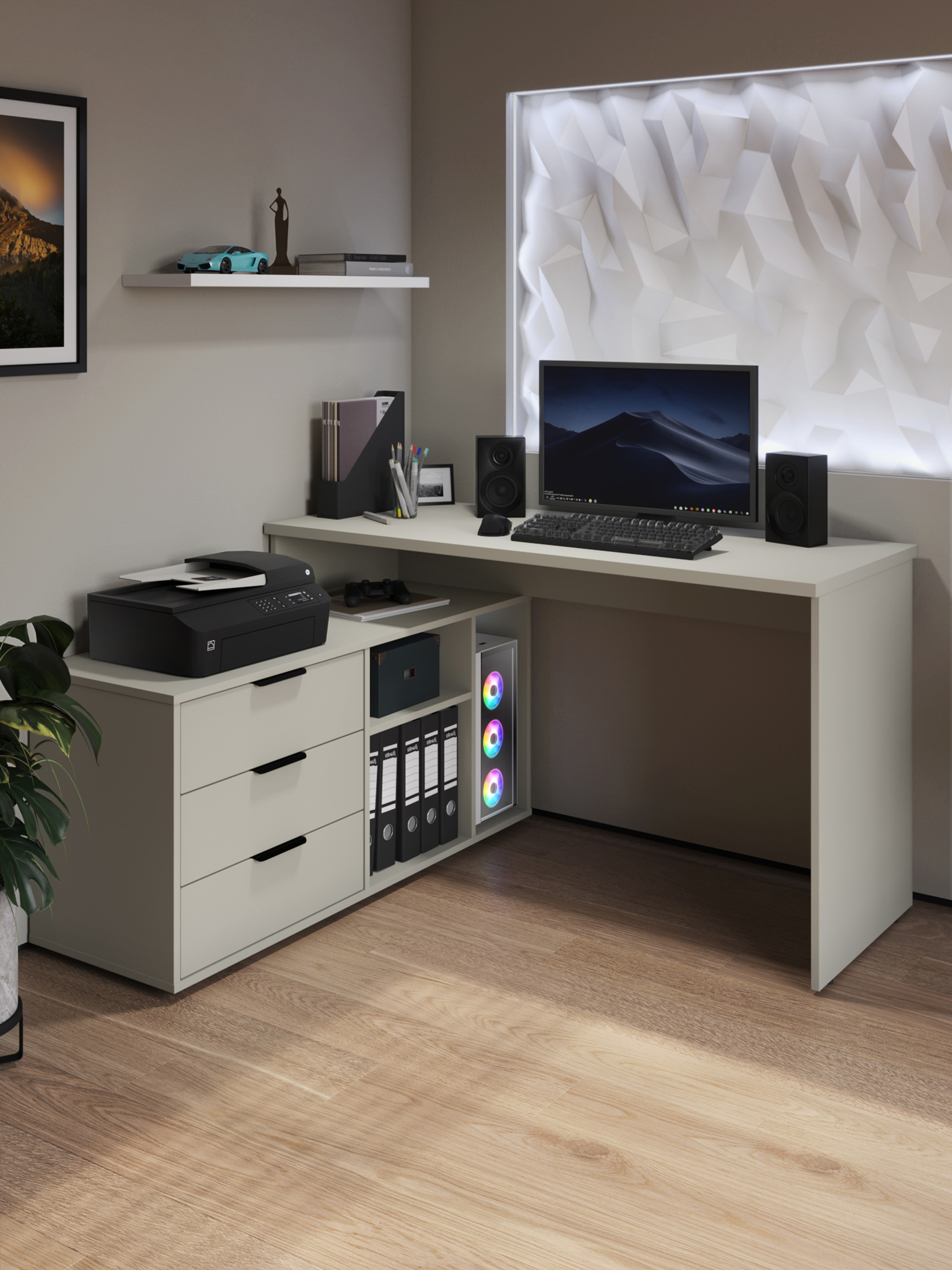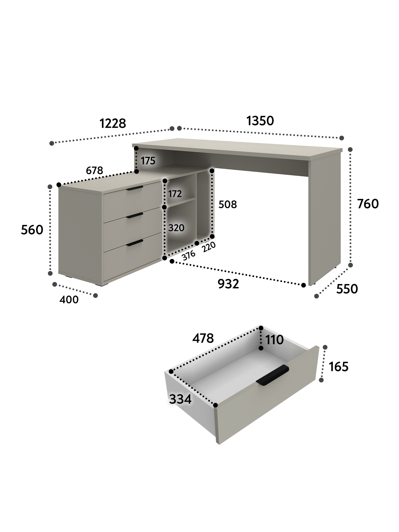 Размеры модуля (ш/в/г) в мм: 1269/1135/1004х880х553 Материал корпуса/фасада: ЛДСП 16 мм, МДФ 16 мм Основные характеристики стола ОП-21: дно ящиков — ДВП 3 мм. прочная стальная опора и тумба с четырьмя выдвижными ящиками для удобного хранения. столешница изготовлена из ЛДСП 16 мм. Преимущества стола ОП-21: Универсальность: подходит для использования в качестве письменного, компьютерного или маникюрного стола. Рекомендуется высокий стул. Фурнитура: телескопические направляющие полного выдвижения без доводчиков, металлические ручки и опора. Доставка и сборка: мебель поставляется в разобранном виде, в надежной упаковке, с подробной инструкцией по сборке. Сборка осуществляется самостоятельно или с привлечением специалистов.