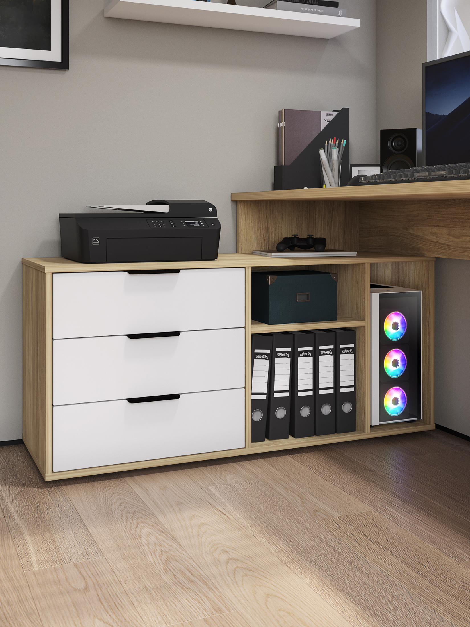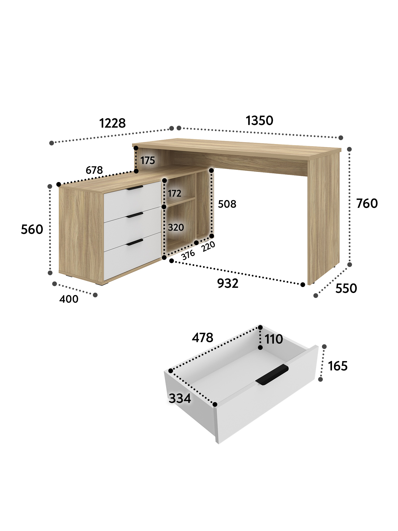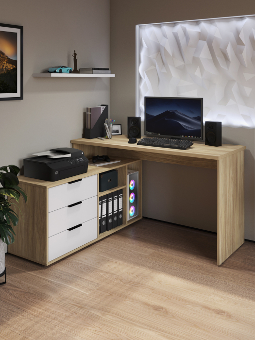 Размеры модуля (ш/в/г) в мм: 1269/1135/1004х880х553 Материал корпуса/фасада: ЛДСП 16 мм, МДФ 16 мм Основные характеристики стола ОП-21: дно ящиков — ДВП 3 мм. прочная стальная опора и тумба с четырьмя выдвижными ящиками для удобного хранения. столешница изготовлена из ЛДСП 16 мм. Преимущества стола ОП-21: Универсальность: подходит для использования в качестве письменного, компьютерного или маникюрного стола. Рекомендуется высокий стул. Фурнитура: телескопические направляющие полного выдвижения без доводчиков, металлические ручки и опора. Доставка и сборка: мебель поставляется в разобранном виде, в надежной упаковке, с подробной инструкцией по сборке. Сборка осуществляется самостоятельно или с привлечением специалистов.