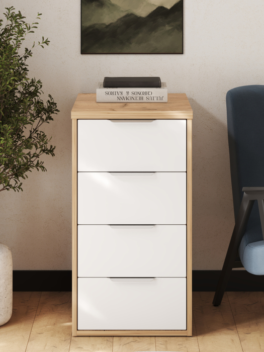 Размеры модуля (ш/в/г) в мм: 406х760х550 Материал корпуса/фасада: ЛДСП 25/16мм, МДФ 16мм Тумба К-52 подойдет для офиса, бизнеса, для рабочего места. Можно использовать как подставную тумбу к столу С-400 или отдельно для принтера. Тумба оснащена 4-мя выдвижными ящиками для различных мелочей. Фурнитура: телескопические направляющие полного выдвижения без доводчиков Столешница ЛДСП 25мм, обработана противоударной кромкой 2 мм Металлические ручки Фасады ящиков МДФ 16мм Задняя стенка ЛДСП 16мм Дно ящика двп 3мм Доставка и сборка: мебель поставляется в разобранном виде, в надежной упаковке, с подробной инструкцией по сборке. Сборка осуществляется самостоятельно или с привлечением специалистов.