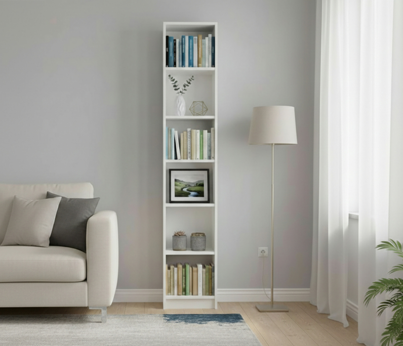 В конструкции предусмотрены четыре регулируемые по высоте полки, поэтому пространство легко подстроить под книги разной высоты, папки или коробки. Глубина стеллажа оптимальна именно для книжного хранения. Максимальная нагрузка на одну полку - 4 кг.