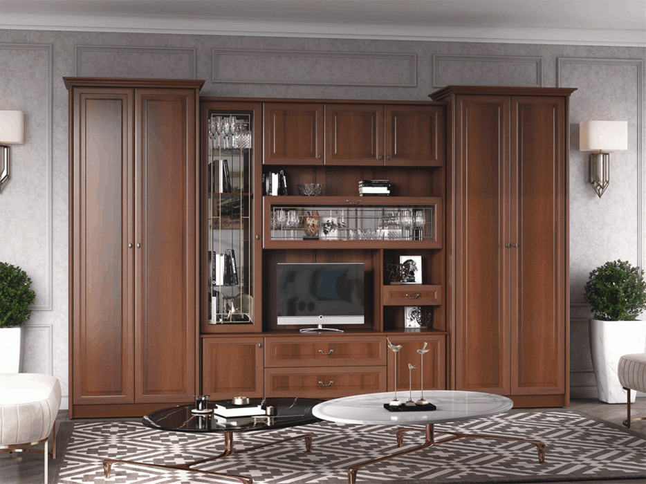 Классическая мебельная коллекция «Янна» - воплощение строгости и элегантности. Рамочные МДФ фасады и карнизы придают предметам мебели завершенный вид, наделяют их солидностью и изысканностью. Такая мебель смотрится благородно, дорого и стильно. В этой мебельной линейке все продумано до мелочей – как в эстетическом плане, так и в функциональном. Прочная металлическая фурнитура служит долго, ее не придется менять на новую. Направляющие полного выдвижения позволяют бесшумно и плавно открывать ящики. Кстати, ящики можно полностью заполнять любыми вещами и не бояться, что их дно провиснет: оно выполнено из прочной ДВП толщиной 3,2 мм. При изготовлении гарнитуров с витринами предусмотрено 2 вида фасадов: с лазерной гравировкой и декоративный витраж.