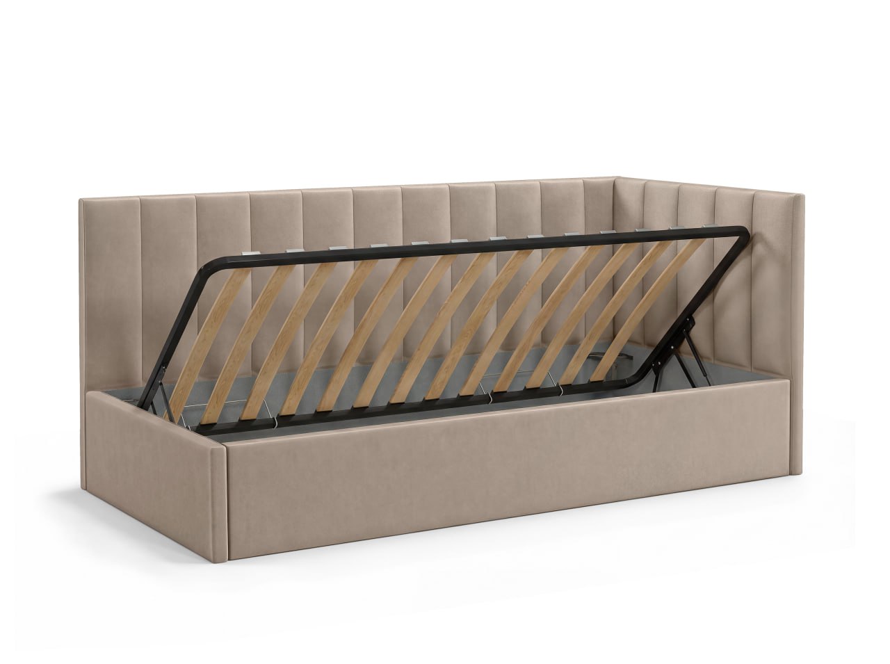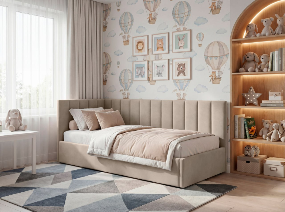 KID — больше, чем односпальная кровать. Это уют, который нравится детям, и, практичность, которую ценят родители. Мягкие линии, современная эстетика и комфортная спинка делают её идеальной для сна, отдыха и чтения. Она создана для ежедневного использования. Кровать не перегружает пространство и визуально сохраняет лёгкость в комнате. Комфортная спинка — удобно опираться во время чтения или отдыха. Размер: 2140*1050*920см (д*в*ш), спальное место (размер матраса): 90×200 см — оптимальный формат для ребёнка и подростка, который растёт, а, также, для отдыха взрослого человека, для гостевой комнаты. Подъёмный механизм: есть. Прочная сварная ортопедическая решетка. Бельевой ящик: есть. Опоры: пластик. Каркас: брус/фанера/ДСП. Наполнение каркаса и спинок: ППУ. Ткань - велюр с трендовой цветовой палитрой. Угол универсальный (право/лево). Задняя стенка изголовья выполнена из технической ткани. Качество материалов: в конструкции используются качественные материалы и надёжные элементы, рассчитанные на активную ежедневную эксплуатацию, чтобы кровать сохраняла форму и комфорт в течение долгого времени. Матрас приобретается отдельно, с необходимыми свойствами (пружинный, безпружинный, с нужным уровнем допустимой нагрузки, жесткостью, наличием нужных слоев), рекомендуемая высота - 21-23 см. Комплектация: 3 пакета. Вес - 69 кг.