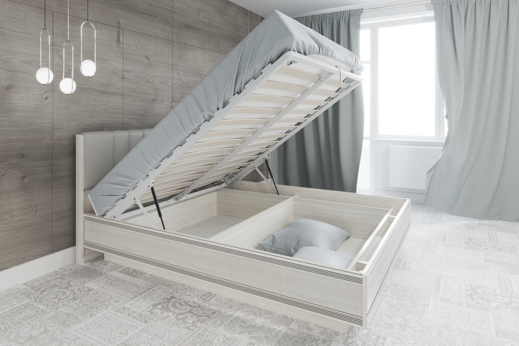 В комплекте кровать с подъемным механизмом.