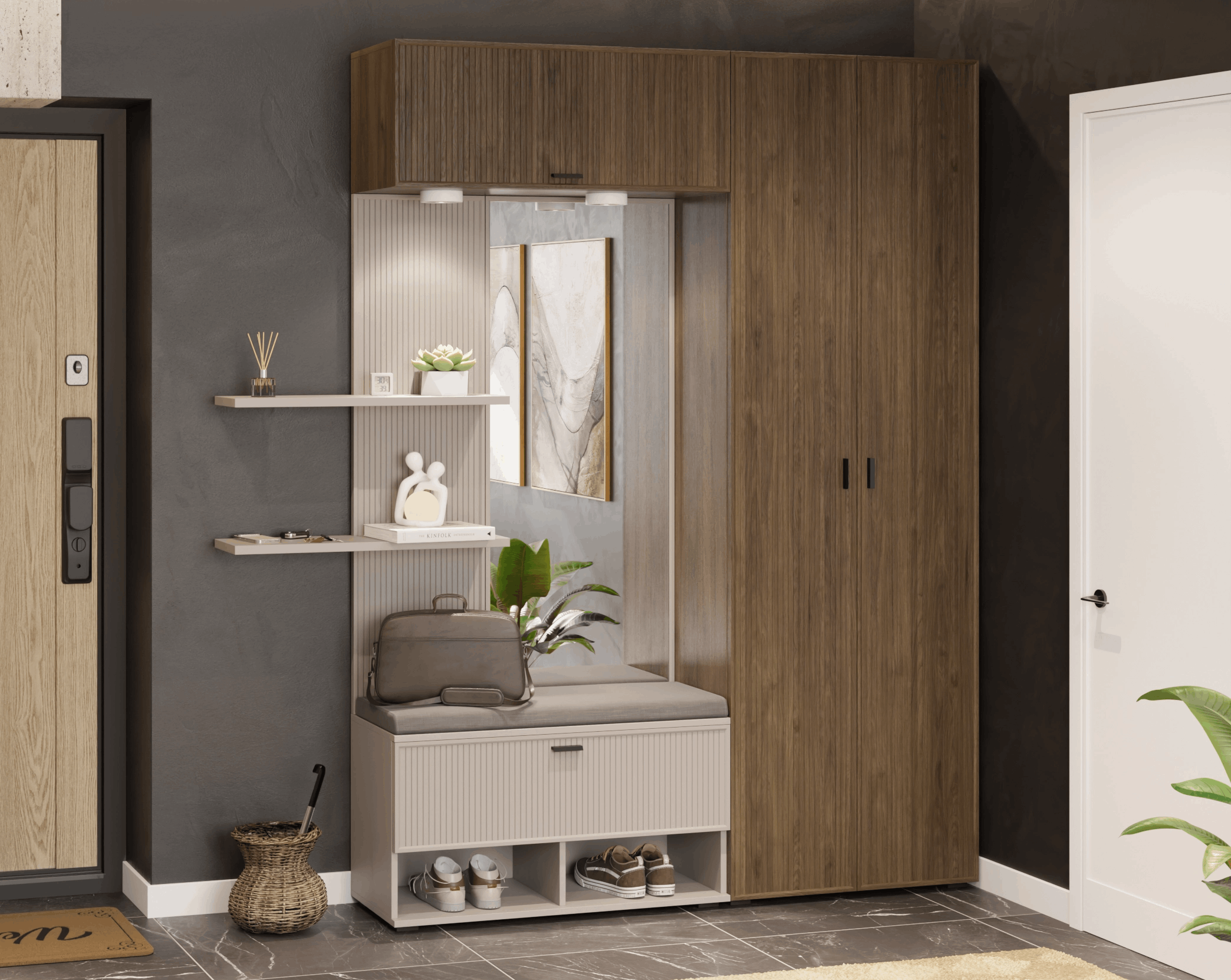 Отзывы о Столплит Модульная прихожая Стелла композиция 2 Серый Кашемир ребристый/Гикори Темный ребристый