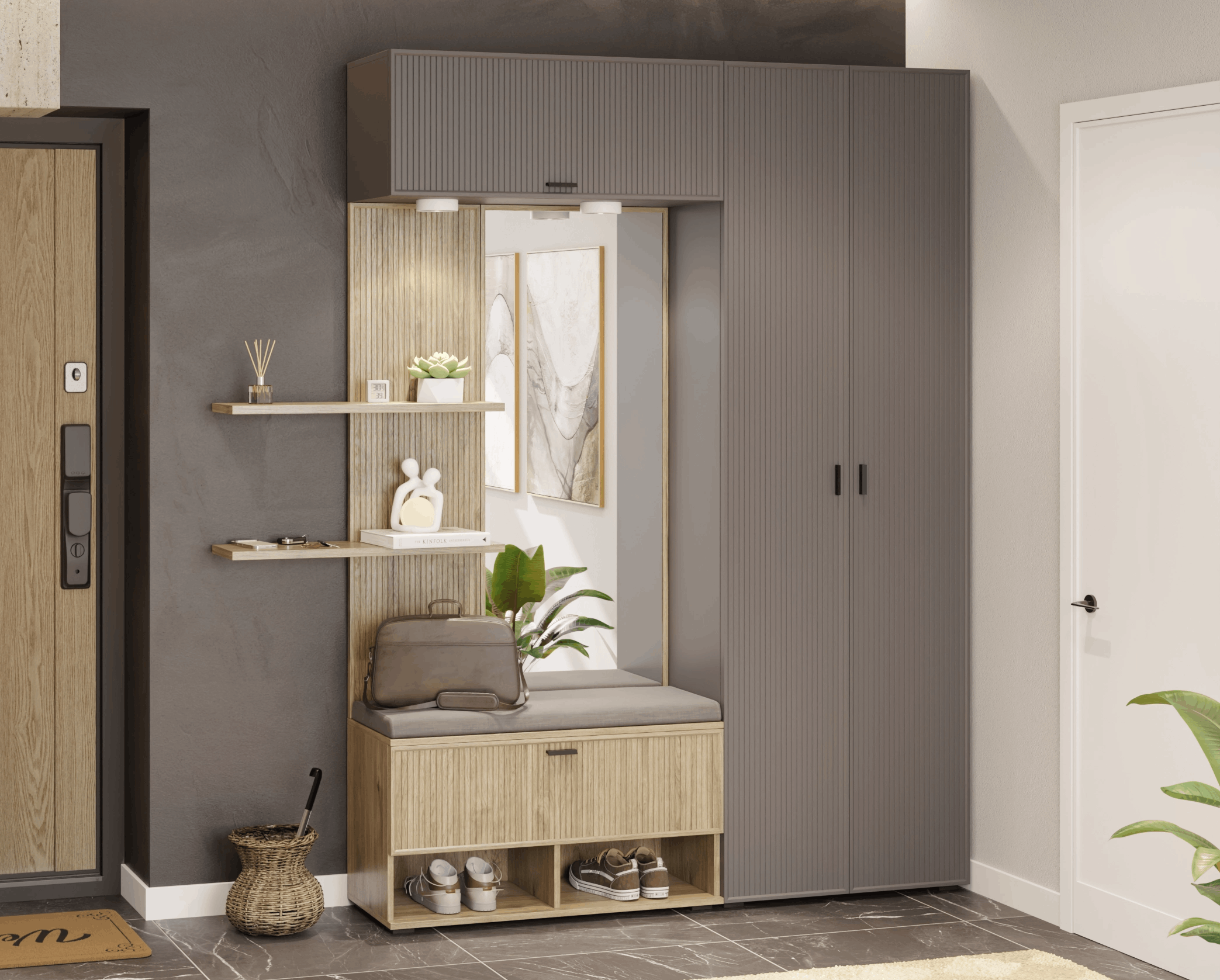 Модульная прихожая Стелла композиция 2 (Серый Оникс Ребристый/Гикори Светлый Ребристый) Код I0000455839