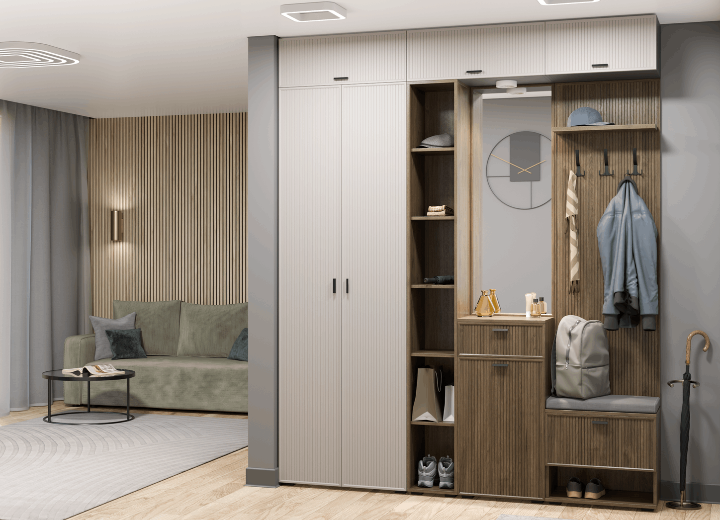 Прихожие СТЕЛЛА воплощают в себе актуальные тенденции мировой мебельной моды и позволяют создавать функциональные интерьеры в современном стиле, обеспечивающие высокий уровень комфорта. Сочетание нейтральных фоновых цветов и акцентных текстур дерева дают возможность открыть новые грани интерьера. Возможность использования различных вариантов вставки — дополнительное преимущество при планировании прихожей.