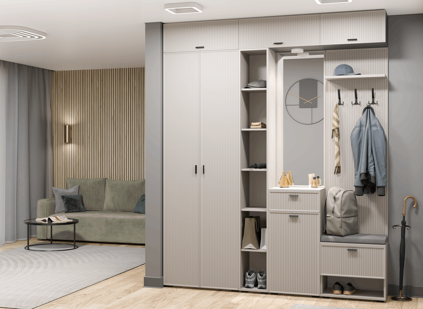 Прихожие СТЕЛЛА воплощают в себе актуальные тенденции мировой мебельной моды и позволяют создавать функциональные интерьеры в современном стиле, обеспечивающие высокий уровень комфорта. Сочетание нейтральных фоновых цветов и акцентных текстур дерева дают возможность открыть новые грани интерьера. Возможность использования различных вариантов вставки — дополнительное преимущество при планировании прихожей.