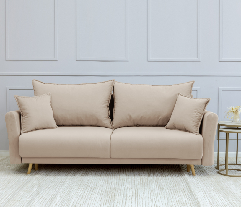 Отзывы о Столплит Диван кровать прямой со спальным местом "Мия", микровелюр Кремовый