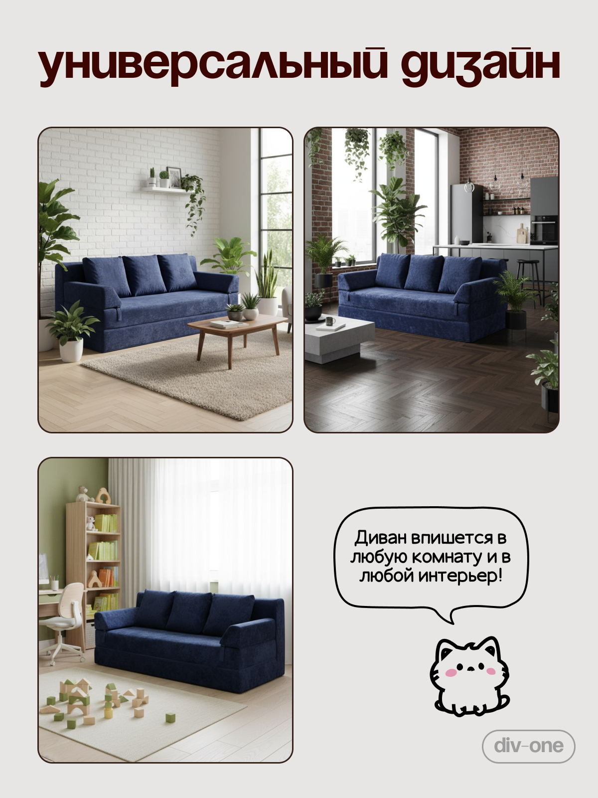 Экологически чистые материалы и продуманный дизайн позволят создать уютную атмосферу в комнате. Удобные съемные подушки обеспечивают дополнительный комфорт во время отдыха, а легкость конструкции позволяет без труда перемещать диван из комнаты в комнату. Книжка подходит не только для квартиры, но и для дачи. Стильный вид впишется в любой интерьер — от лофта до модерна.