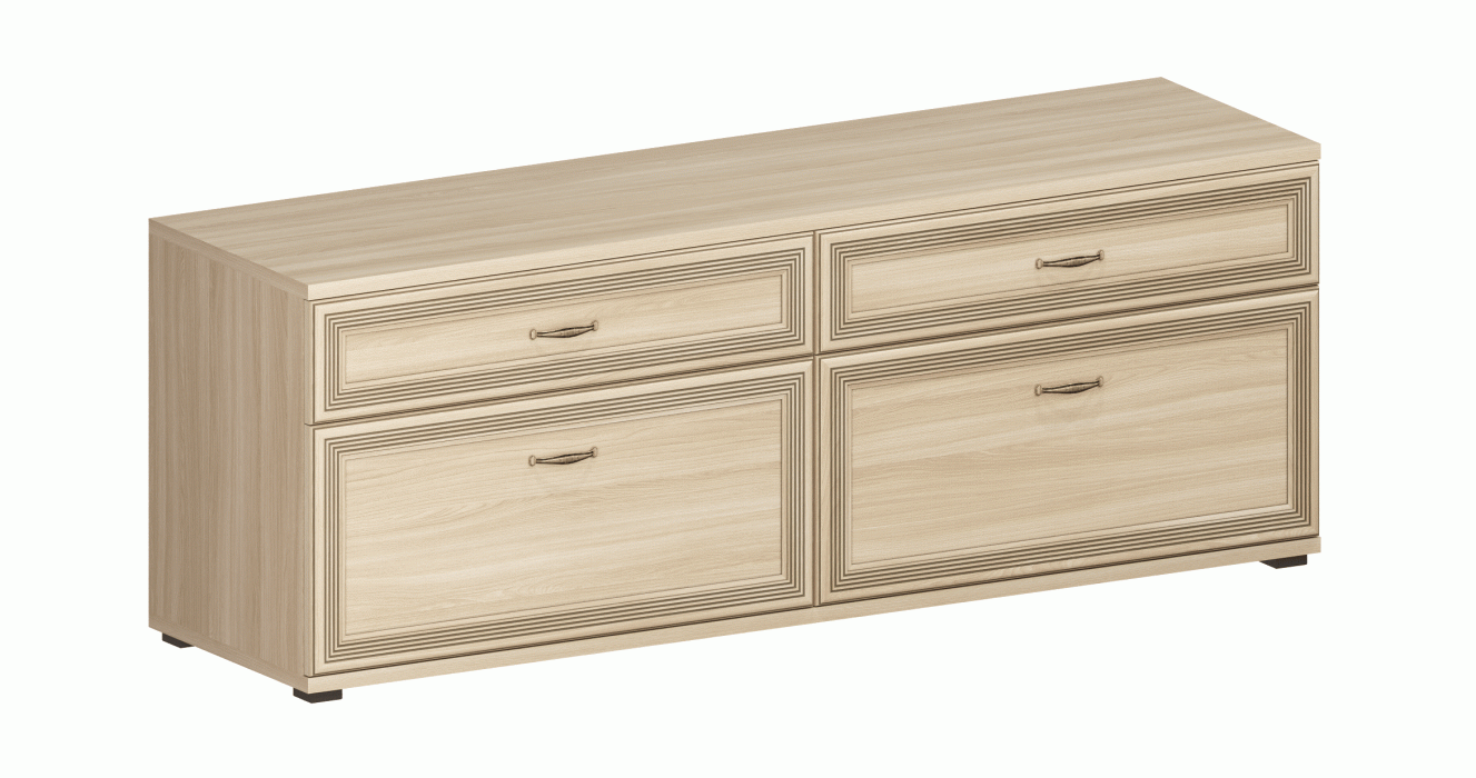 Корпусная мебель для гостиной "Карина" - это модульная мебель. Коллекция включает в себя более 70-ти оригинальных модулей, созданная с их помощью композиция отлично впишется в любое помещение. Программа «Карина» позволит создать уют и гармонию в гостиной. Фасад имеет уникальное сочетание глубокого тиснения и эффекта патины, присущей классическому стилю. Изящество фасада подчеркивает стекло с алмазной гравировкой и фацетом. Мебель изготавливается из высококачественных материалов: ЛДСП, МДФ (фасад) компании Egger имеют класс эмиссии Е1. Коллекция мебели комплектуется высококачественной европейской фурнитурой. Во всех выдвижных ящиках используются направляющие Quadro фирмы Hettich, которые обеспечат долгую превосходную функциональность. Встроенный демпфер Silent System позволяет закрывать ящик плавно и бесшумно. Скрытый монтаж делает механизм в нижней части ящика невидимым глазу, что позволяет не нарушать элегантный дизайн. Петли с доводчиками фирмы Titus обеспечивают бесшумное закрытие створки.
