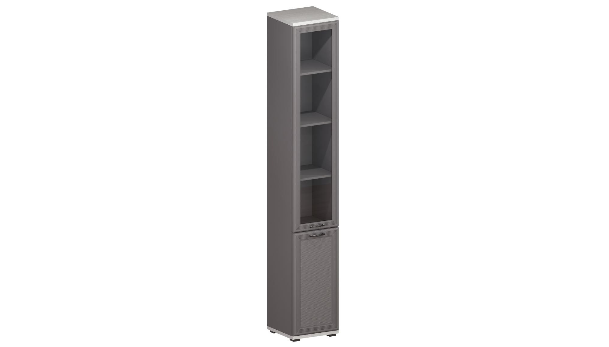Модульная система Карина Шкаф ШК-1057 пенал для книг со стеклом (Снежный ясень/Серый Оникс) Код I0000458052
