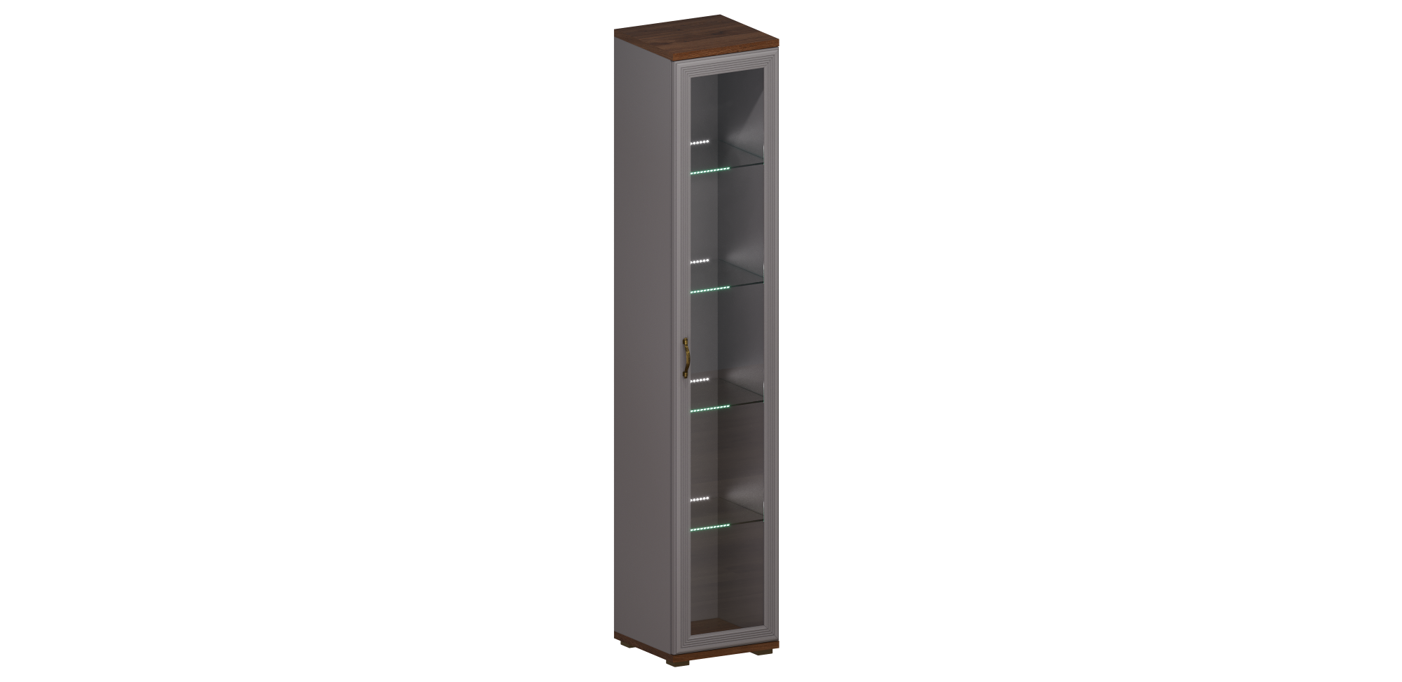Модульная система Карина Шкаф ШК-1067 пенал для посуды со стеклом (Гикори Джексон тёмный/Серый Оникс) Код I0000458069
