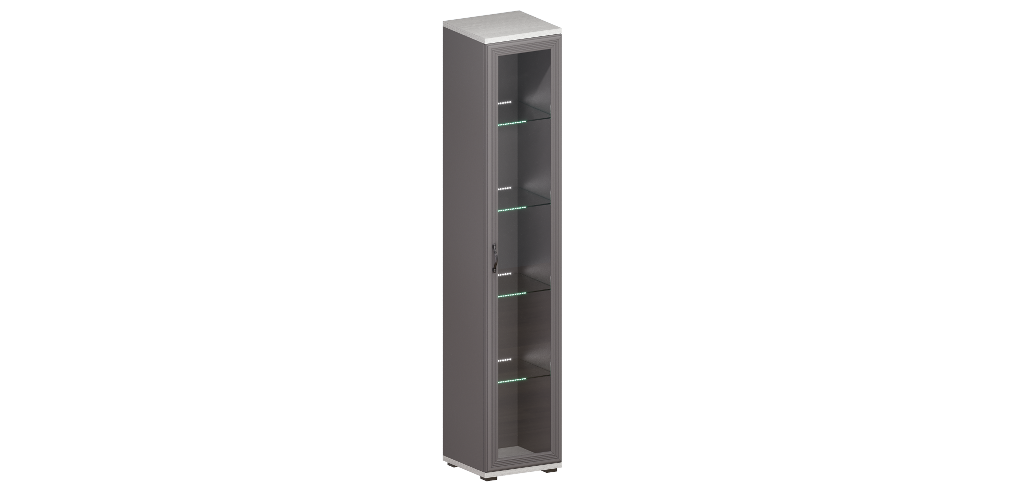 Модульная система Карина Шкаф ШК-1067 пенал для посуды со стеклом (Снежный ясень/Серый Оникс) Код I0000458070