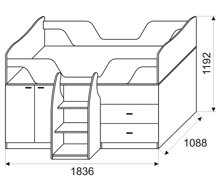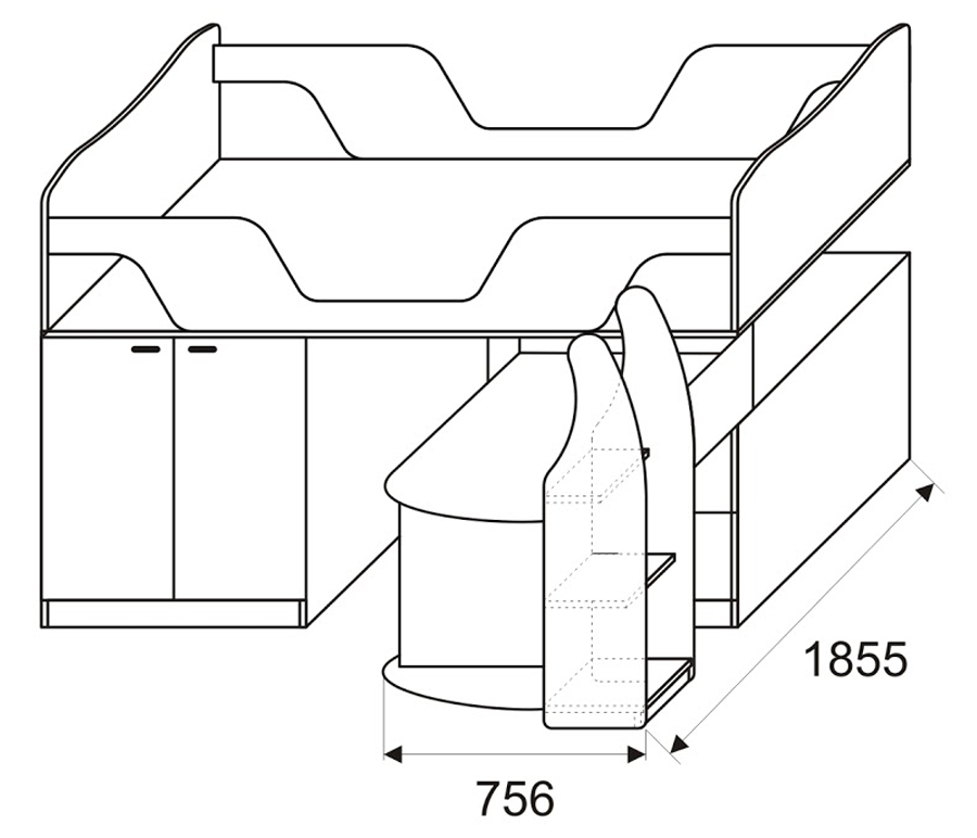 Кровать-чердак 3 в одном!!! Шкаф, кровать и письменный стол. Мало занимает в комнате места! Дочка влюбилась в кровать. Очень нравится ей выдвигать стол. Собирал кровать муж! Все доступно написано, никаких сложностей не возникло)))