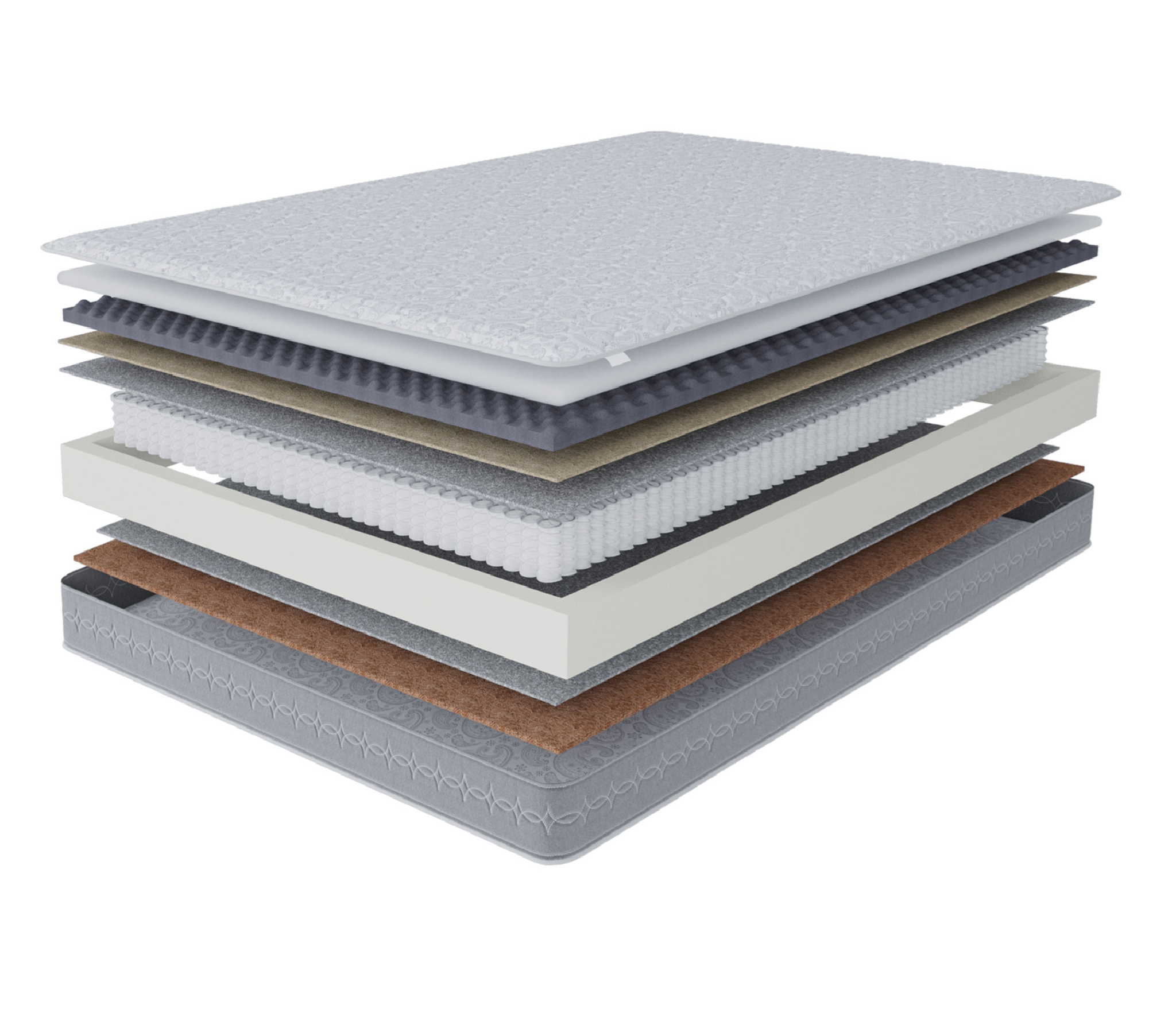 Наполнитель: вязкоэластичная пена с эффектом микромассажа, натуральный сизаль, латексированная кокосовая койра 20 мм, термовойлок