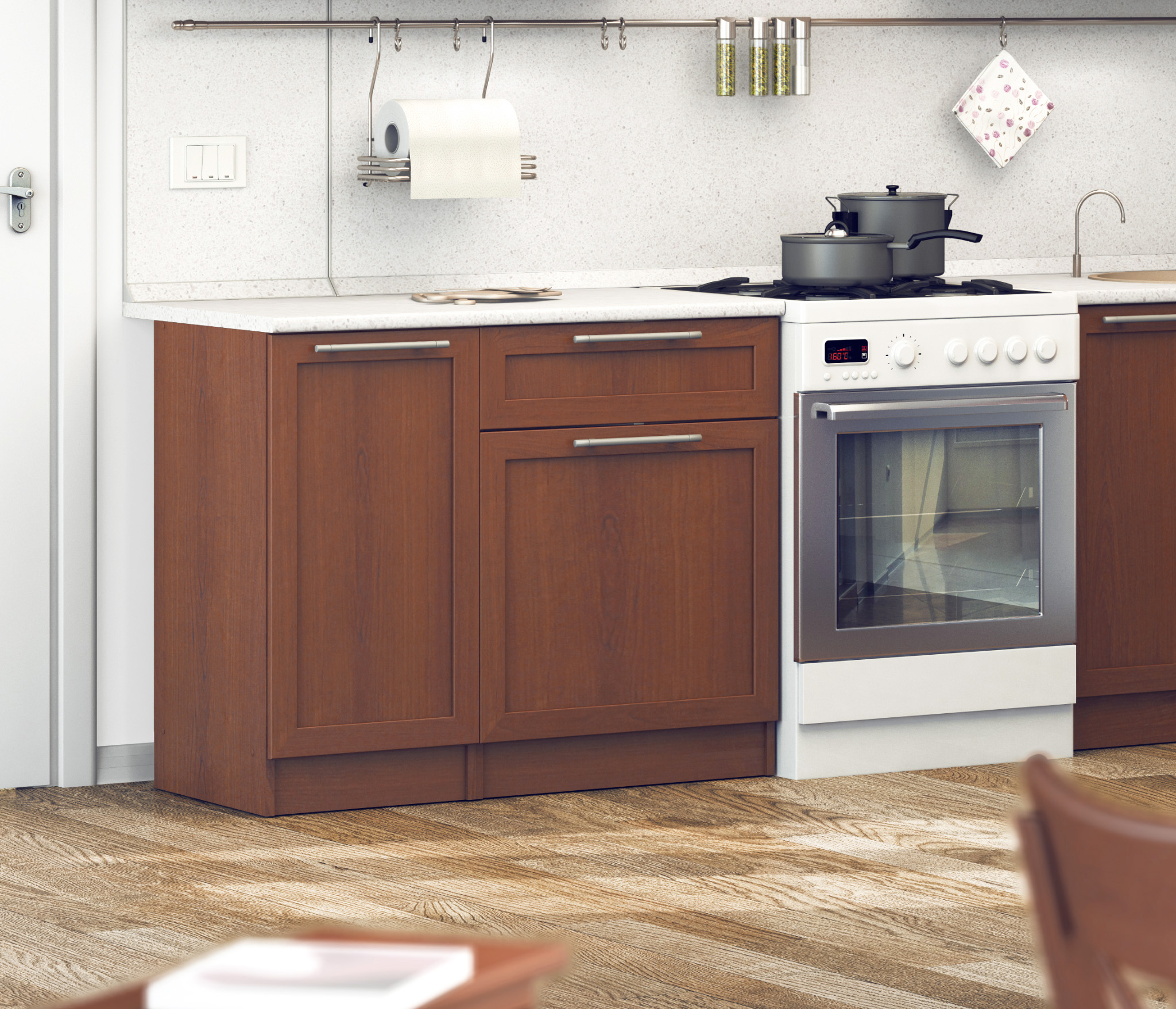 Рамочный фасад выполнен из МДФ профиля, филенка из КДСП орех итальянский.