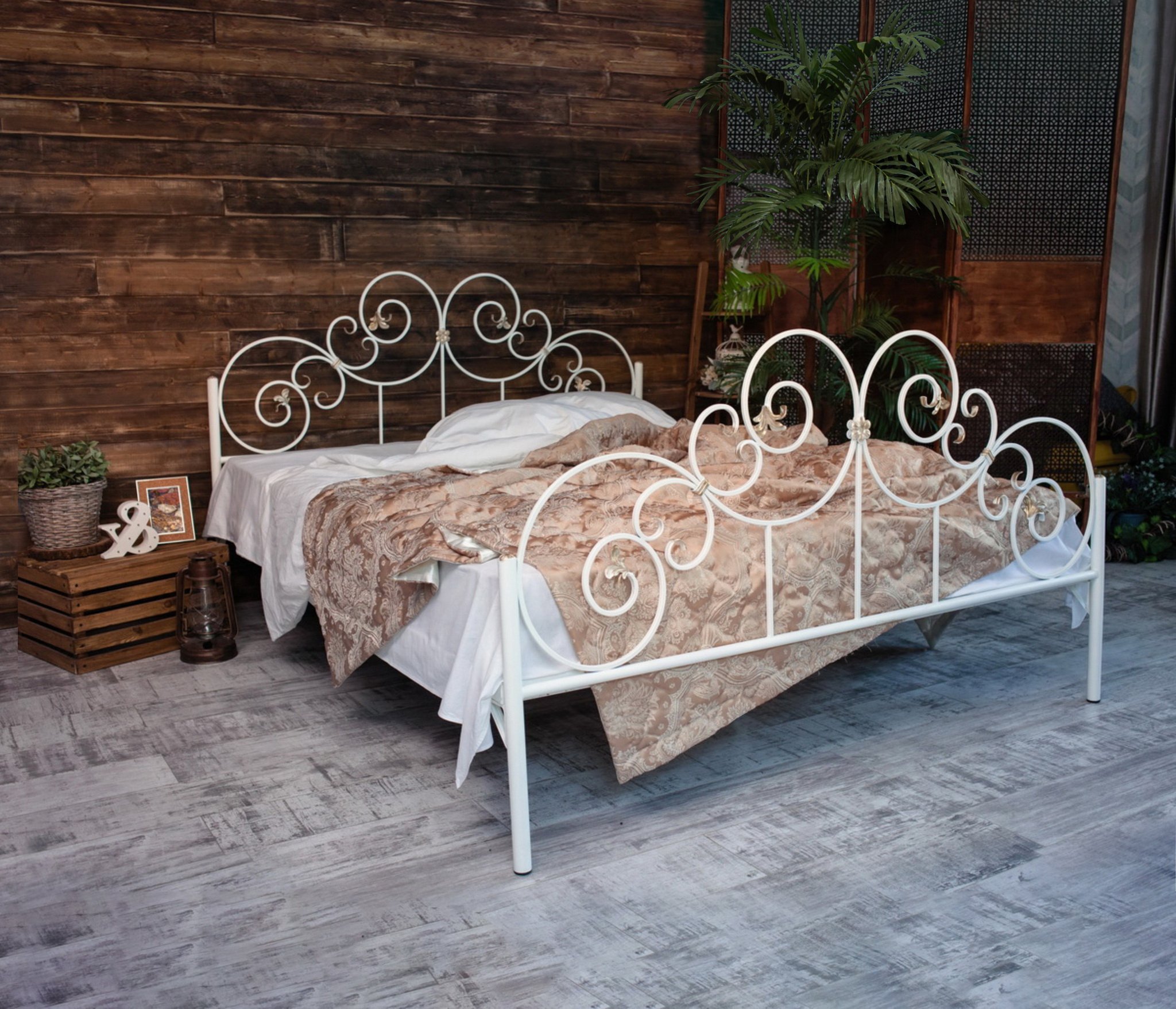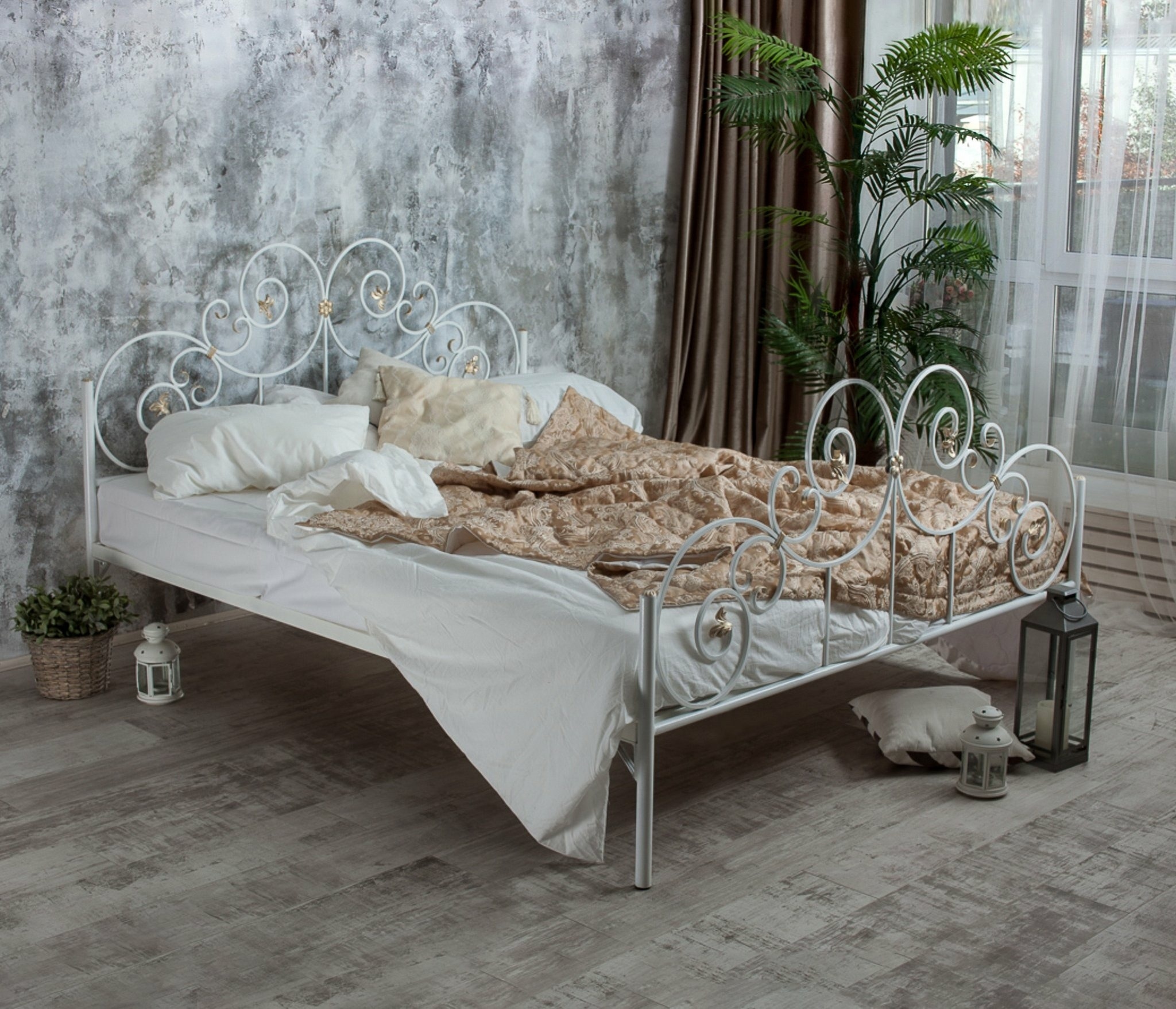 Кованая кровать Афина 1.4 с двумя спинками (Белый)