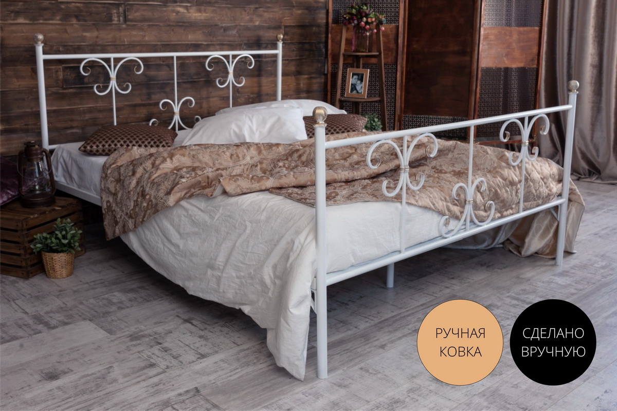 Кованая кровать Симона 1.6 с двумя спинками (Белый)