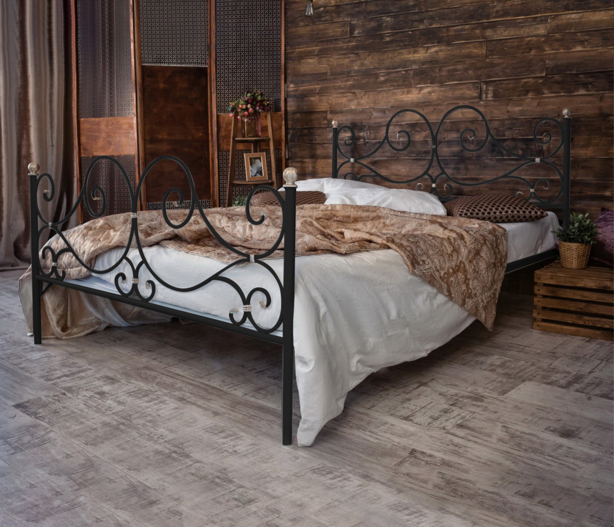Кованая кровать Верона 1.4 с двумя спинками (Черный)