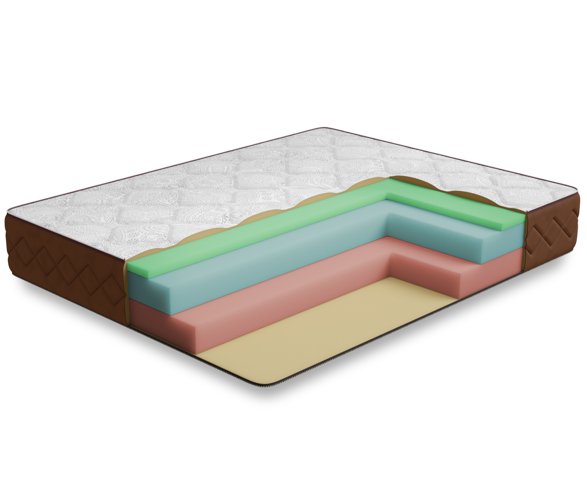 Один из лучших матрасов в нашем ассортименте беспружинных матрасов. Основу матраса составляют 3 вида премиальной пены. Верхний слой - пена с памятью формы, которая создает воздушность и комфорт, точно повторяя и запоминая, каждый изгиб тела. Средний слой- слой пены, которая обладает исключительной упругостью, этот слой принимает на себя основную нагрузку и распределяет ее по всей поверхности, оказывая обратное давление лишь там где это необходимо. Нижний слой сделан из особо жесткой и прочной пены, которая и позволяет матрасу выдерживать очень высокие нагрузки на спальное место (до 150 кг). Чехол матраса выполнен из особо мягкого трикотажа высокой плотности, итальянского производства, ткань чехла не впитывает запахи и легко отмывается.Бурлет (бок) матраса выполнен из мебельной ткани, которая придает ему законченный вид и увеличивает срок его службы. Чехол стегается на 15 мм пене. Матрас можно заказать в скрученном в рулон виде, данный вид упаковки значительно упрощает транспортировку, ведь в рулоне он поместиться, почти в любую, легковую машину. При выборе матраса следует помнить о том, что любой матрас не отвечает за правильность положения головы и шеи, их здоровье зависит от правильно подобранной ортопедической подушки. Для увеличения срока службы матраса рекомендуется его использование с защитным чехлом AquaStop.