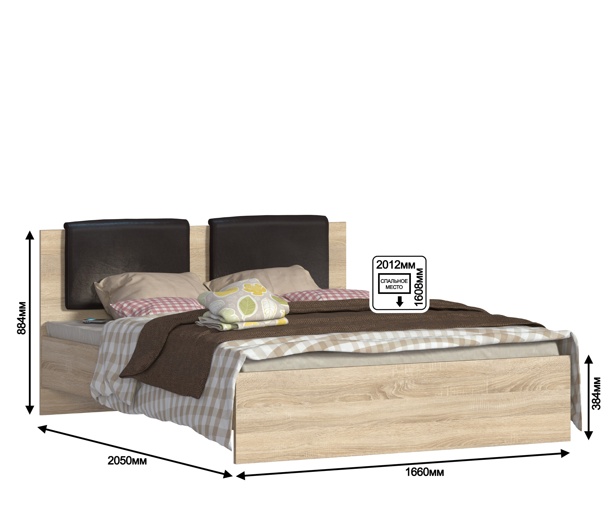 Размер спального места 1600 x 200 мм.