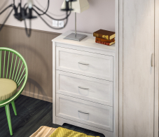 Выполнен комод Прованс из современного высококачественного материала. Цвет отделки Дуб Сонома Белый позволяет вписать данную модель в любой интерьер.