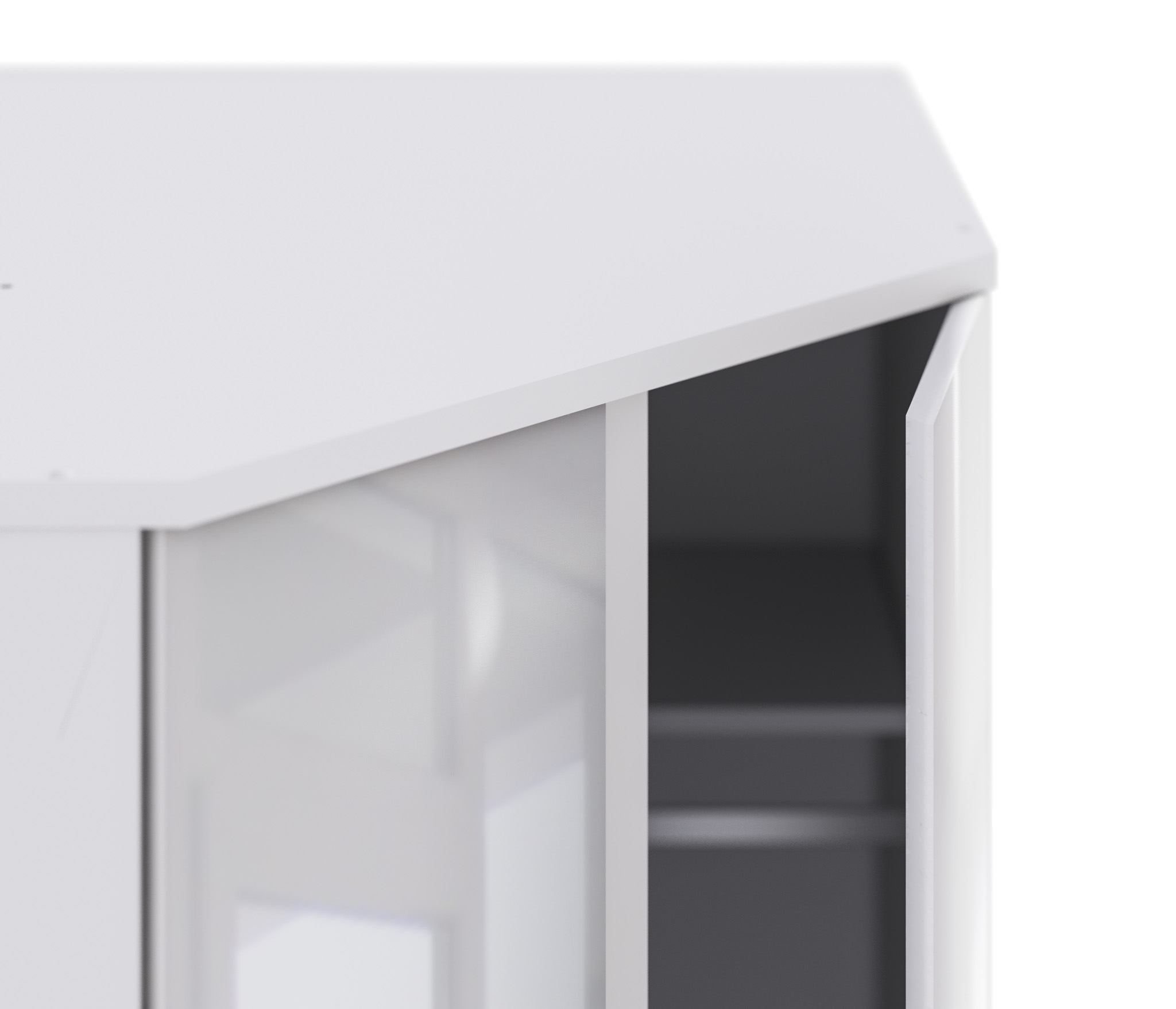 ручек, но хорошо продуманной системой открывания дверей. Шкаф состоит из 2-х