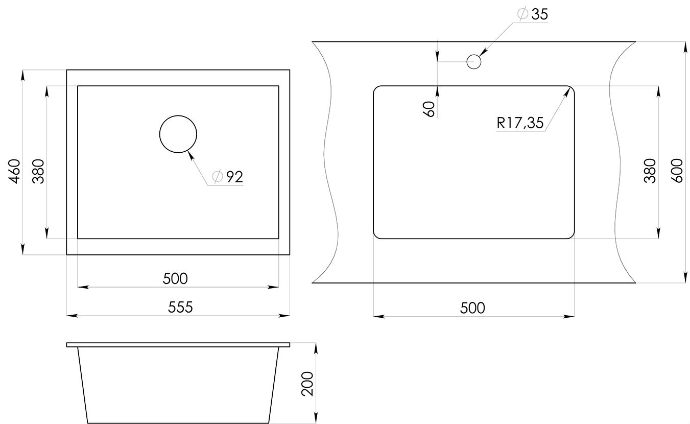 • Габаритные размеры мойки: 555 x 460 мм