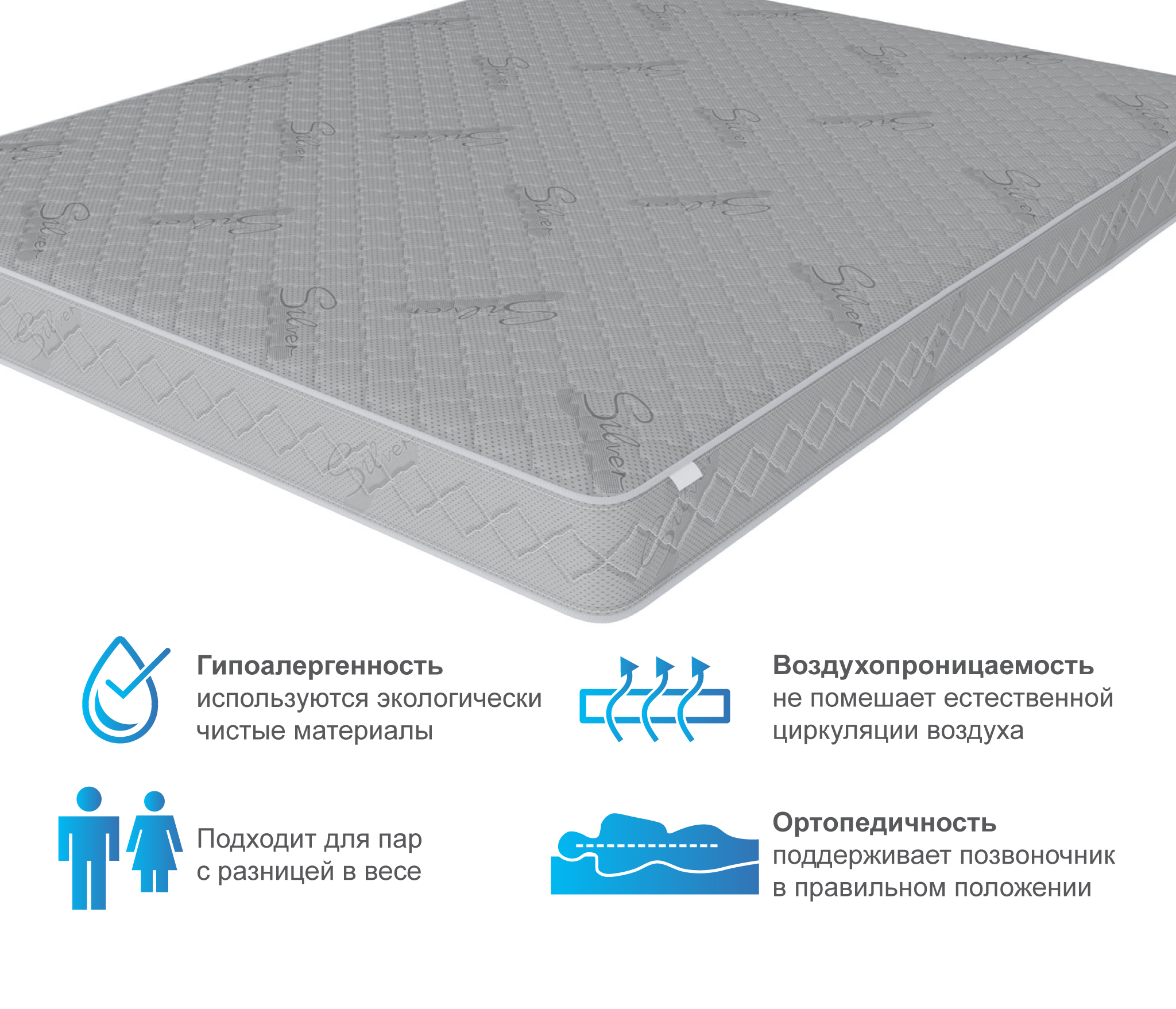 Каждый элемент наполнения матраса по недорогой цене направлен на то, чтобы сделать отдых пользователя здоровым и максимально приятным. Состав включает: