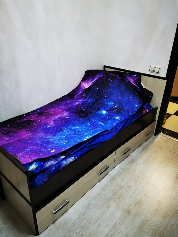 Кровать высокая и широкая. Места под кроватью - вагон.