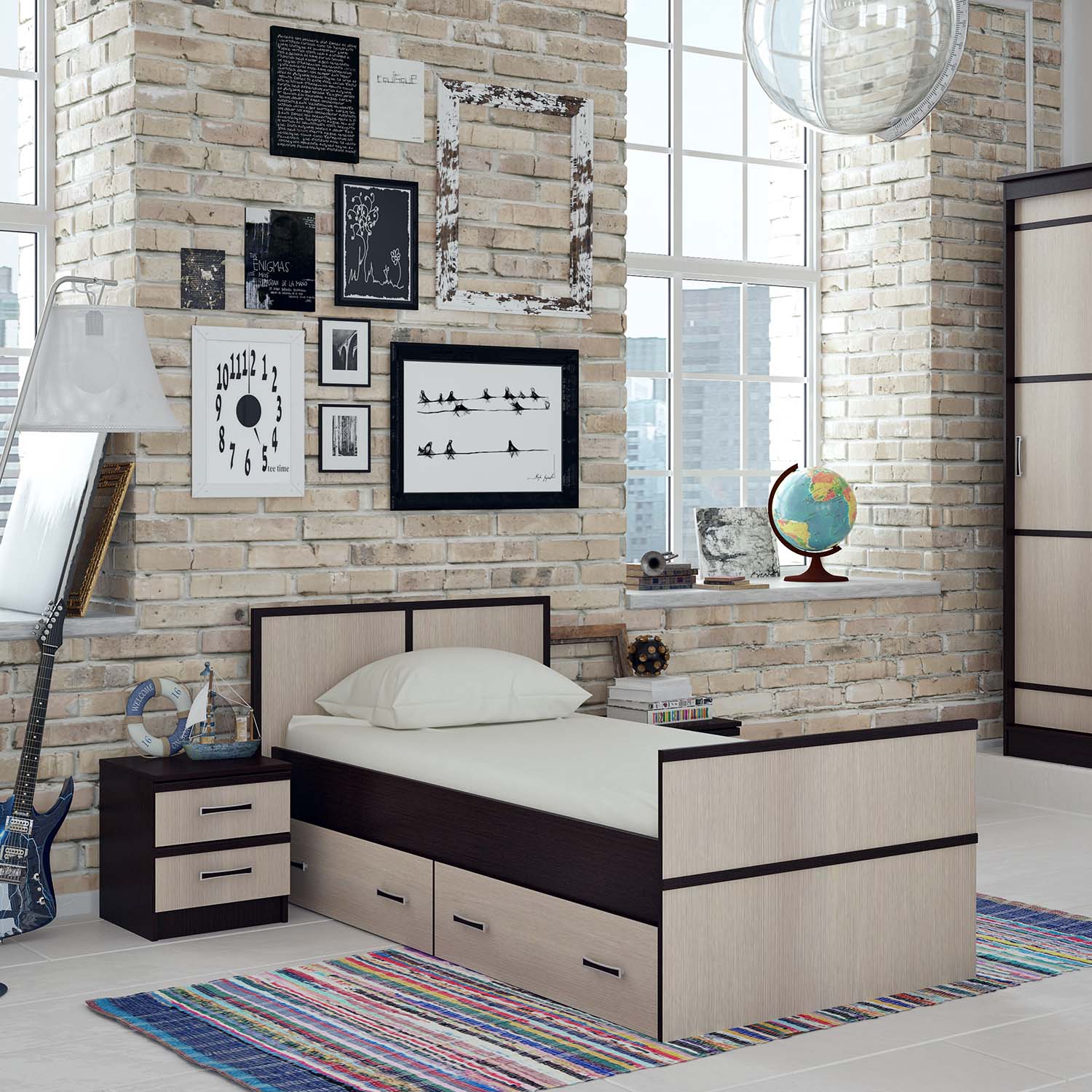 Эту спальню можно приобрести как готовое решение, так каждый модуль в отдельности.