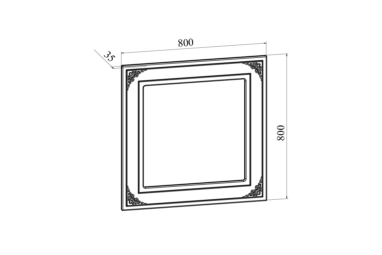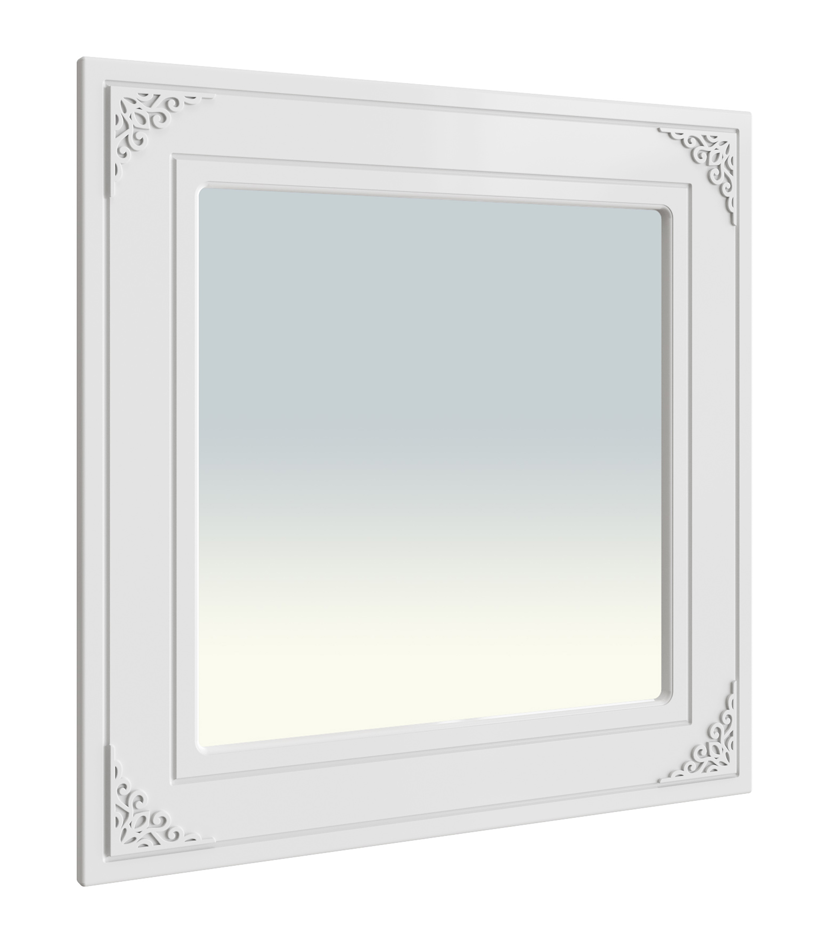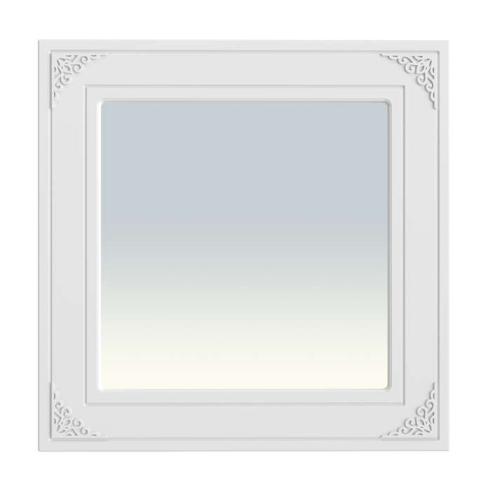 Квадратное зеркало в простой квадратной раме, полностью повторяющее стиль и элементы всей линейки. Мебель изготовлена из качественной ламинированной ДСП 16 мм. В оформлении фасадов МДФ применяется уникальная технология нанесения объемного узора (3-D).