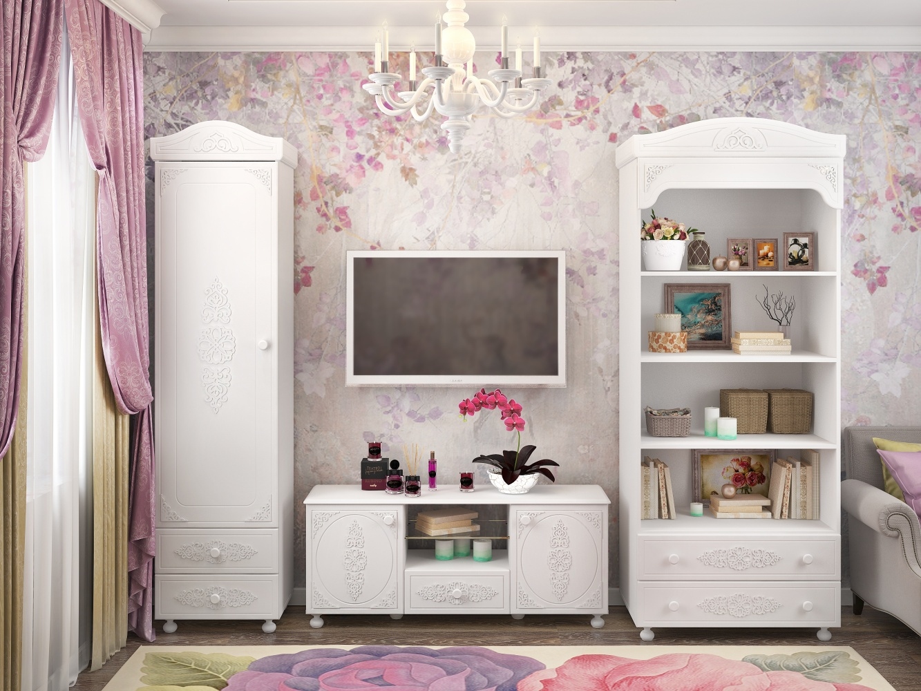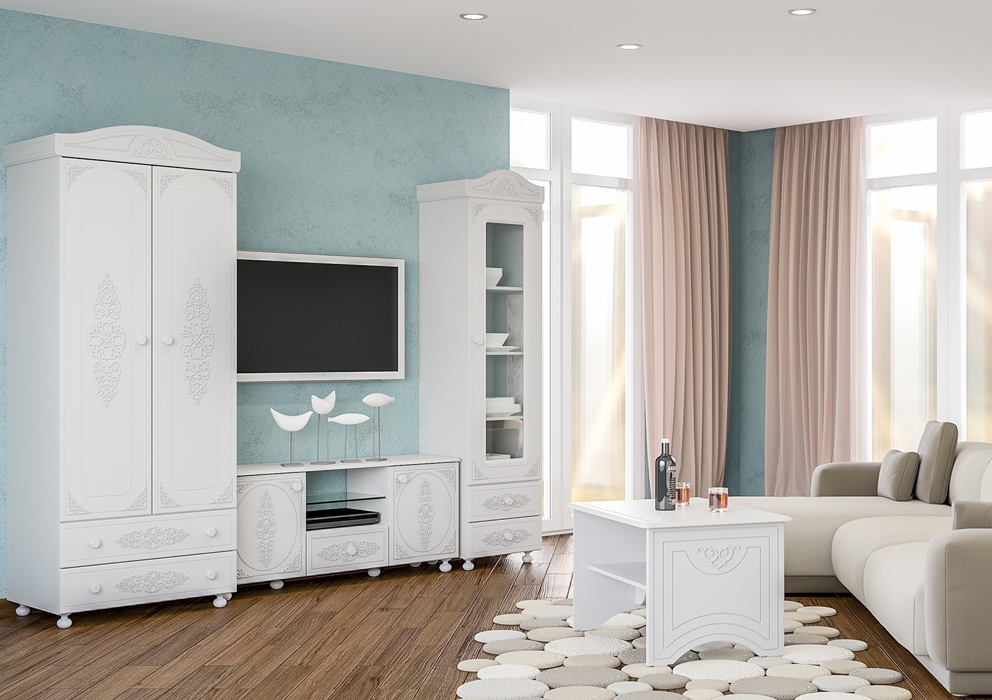 «Ассоль» - мягкий мерцающий глянец и эксклюзивный узор, повторяющийся на фасадах всех модулей идеален для создания нежного уютного интерьера спальни, гостиной, детской, прихожей.