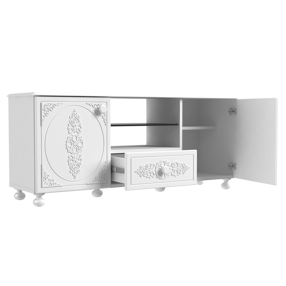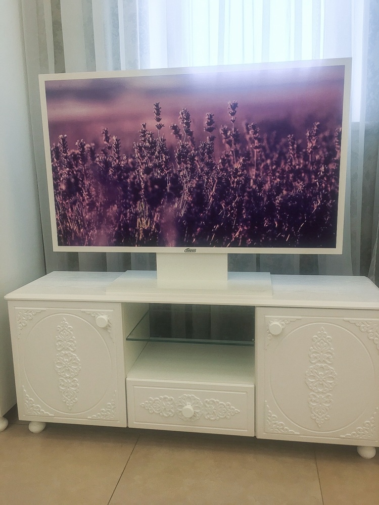 Комбинированная тумба со стеклянной полкой и нижним выдвижным ящиком.