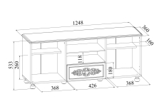 В каждой закрытой части тумбы имеется нижняя полка длинной 350 мм и шириной 360 мм. Над ней расположена дополнительная узкая полка шириной 160 мм, зонирующая пространство на две части. Более узкая верхняя полка позволяет размещать на нижней полке высокие предметы. Высота верхней полки в тумбе 160 мм, высота нижней полки до верхней в месте зонирования — 260 мм, полная высота — 420 мм.