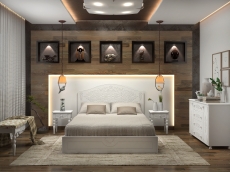 «Ассоль» - мягкий мерцающий глянец и эксклюзивный узор, повторяющийся на фасадах всех модулей идеален для создания нежного уютного интерьера спальни, гостиной, детской, прихожей.