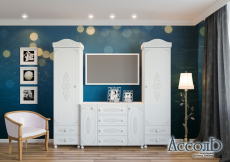 «Ассоль» - мягкий мерцающий глянец и эксклюзивный узор, повторяющийся на фасадах всех модулей идеален для создания нежного уютного интерьера спальни, гостиной, детской, прихожей.