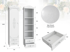 Внутри шкаф-пенала установлены 4 полки. Высота каждой полки 337 мм.