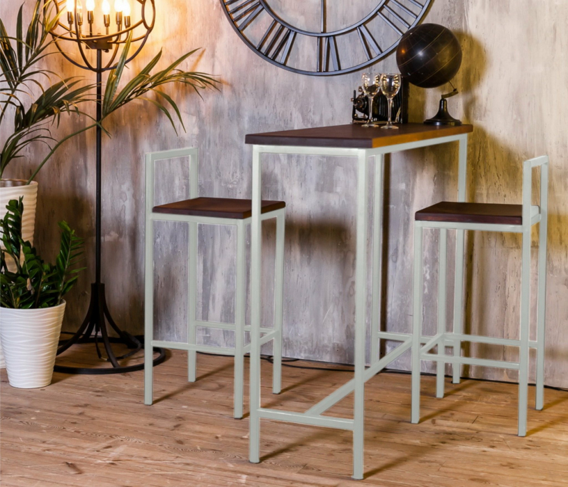 Каркас: профильная труба 20х20 мм.Прочное полимерно-порошковое покрытие черного, белого и серого цвета Дерево: массив сосны 20 мм, покрытое специальным маслом для мебели, цвета на выбор: бесцветный, белый, серый, махагон, орех, морёный дуб, черный, клён, черный графит, голубой графит, темное золото графит, золото графит.